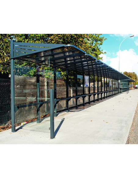 Module intermédiaire pour abribus Conviviale®. Longueur 100 cm. Composé d’un poteau avec bardage de fond et toiture. Il est préférable et recommandé que les modules supplémentaires soient prévus au...