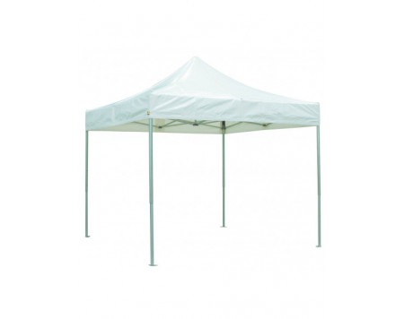 Toit : toile PVC 520 g/m² classé au feu M2, tension du toit par velcro avec renfort d’angles en PVC 650 g/m², coloris blanc.