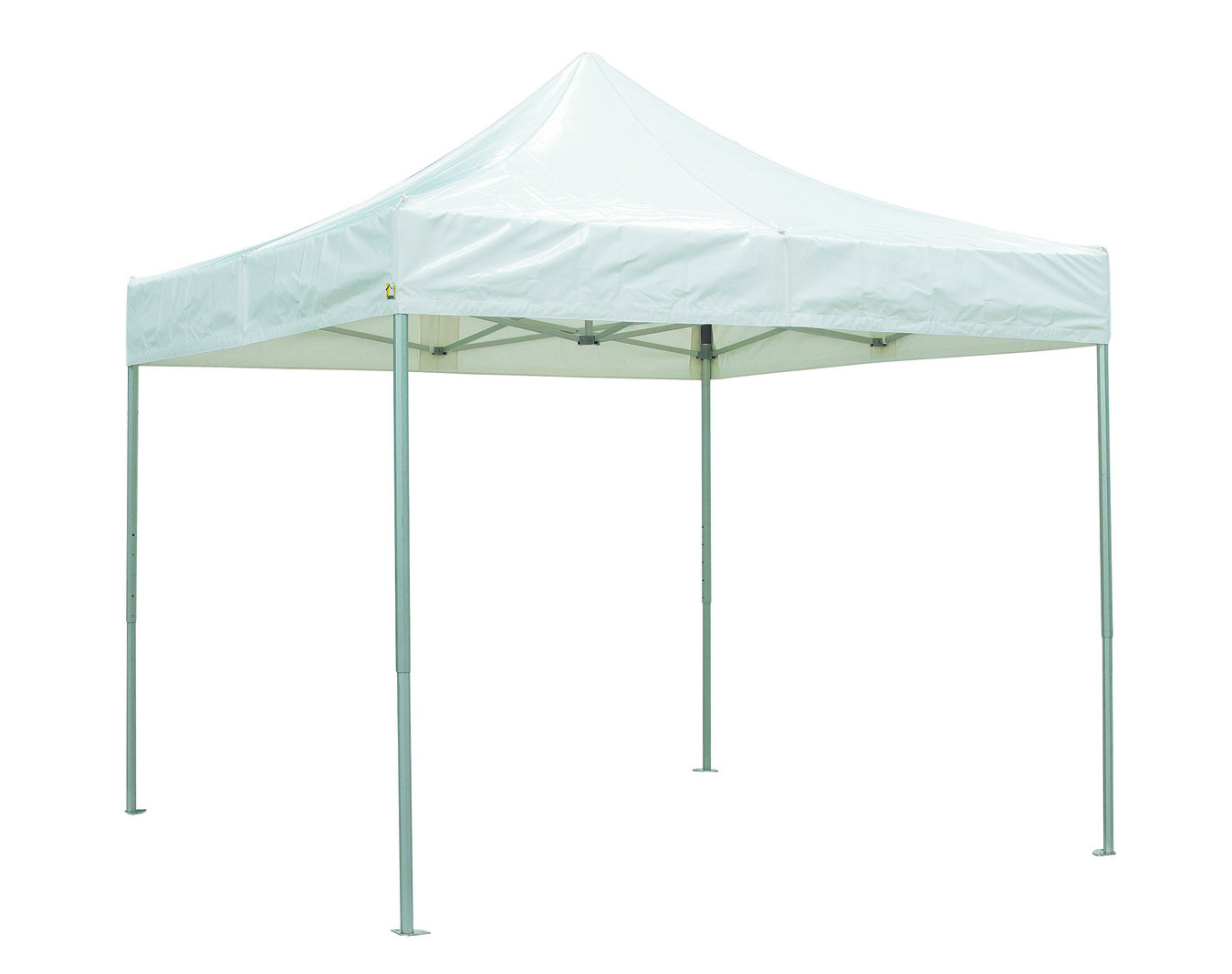 Abri basic : structure + toit + kit d'haubanage + sac de transport (+rideaux en option). Structure : aluminium anodisé, piètement 6 faces Ø 50 mm (épaisseur 2 mm) et croisillon section 35 x 18...