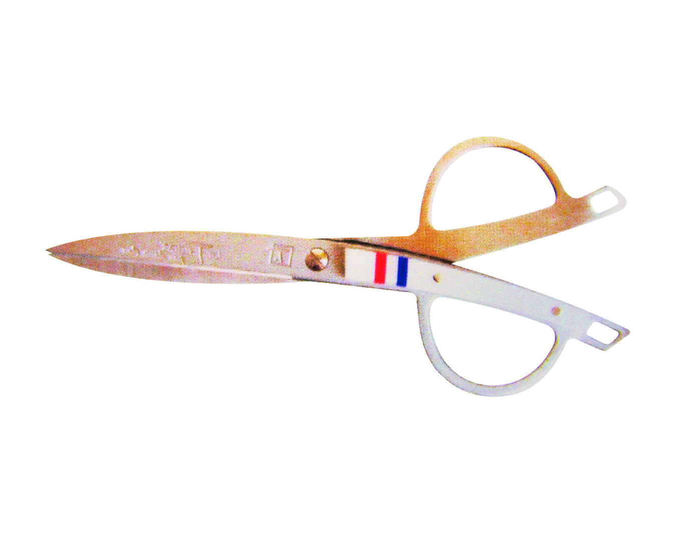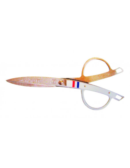 Ciseaux d'inauguration en métal doré ou avec lames inox et inclusion sur le manche en résine. Longueur 19 cm.