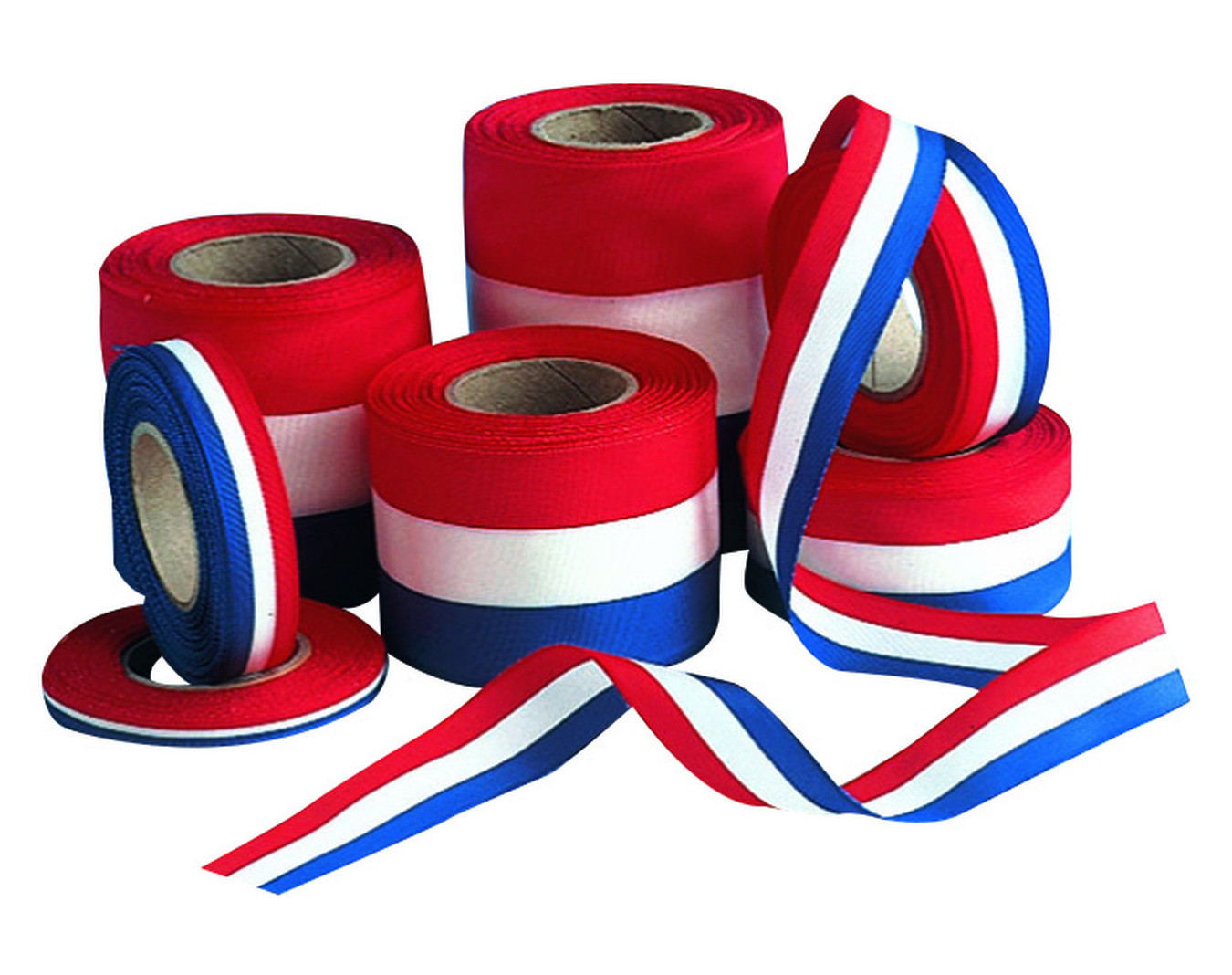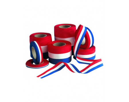 Ruban tricolore. Polyester. Rouleau de 10 mètres.
