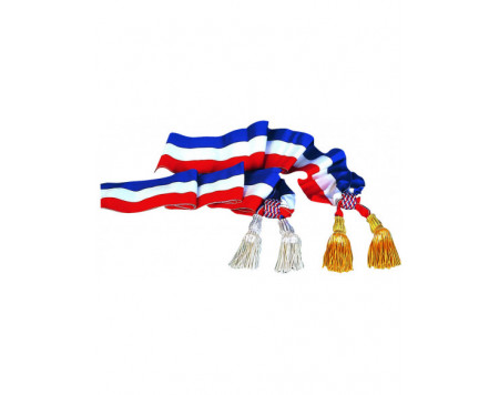 Tissu Ottoman. Coulants assortis aux glands. Longueur : 180 ou 200 cm. Écharpe de Maire : glands or (en lurex). Écharpe d'Adjoint : glands argent (en lurex). Livrée dans une pochette individuelle....