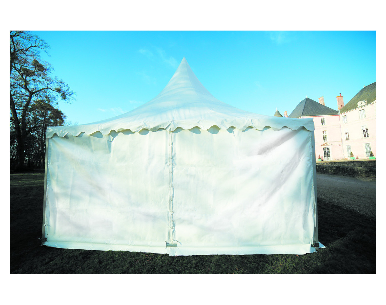 Rideaux avec fenêtre à l’italienne ou fenêtre cristal pour l'abri Garden 25 m². Toile PVC 650 g/m², classement au feu M2. Dimensions : larg. 500 x haut. 220 ou 250 cm.