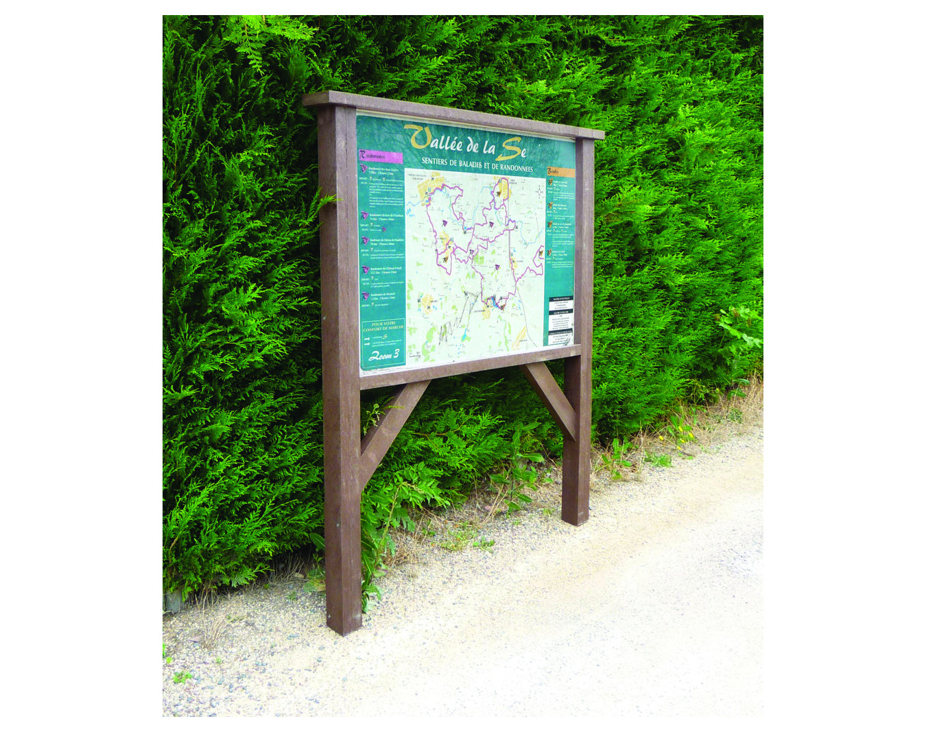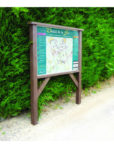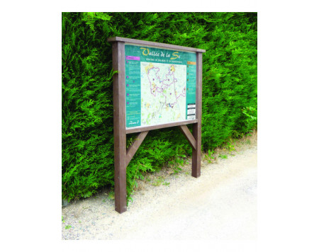 Possibilité d'ajouter une vitrine plexiglas avec serrure au panneau d'info recyclé.