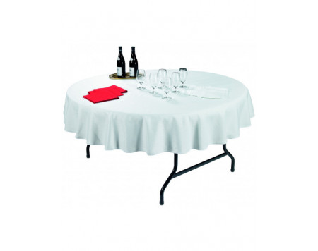 Nappe pour table ronde : - Ø 200 cm pour table Ø 152 cm. - Ø 230 cm pour table Ø 182 cm. Coloris : blanc.