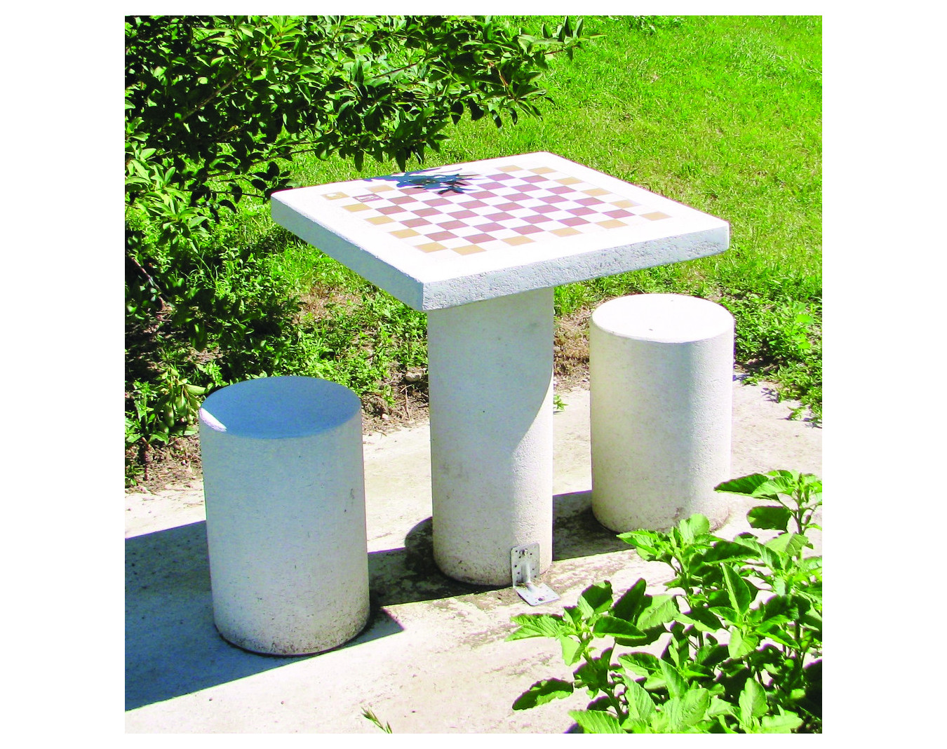 Tabouret supplémentaire en béton armé blanc pour table de jeux en béton blanc.