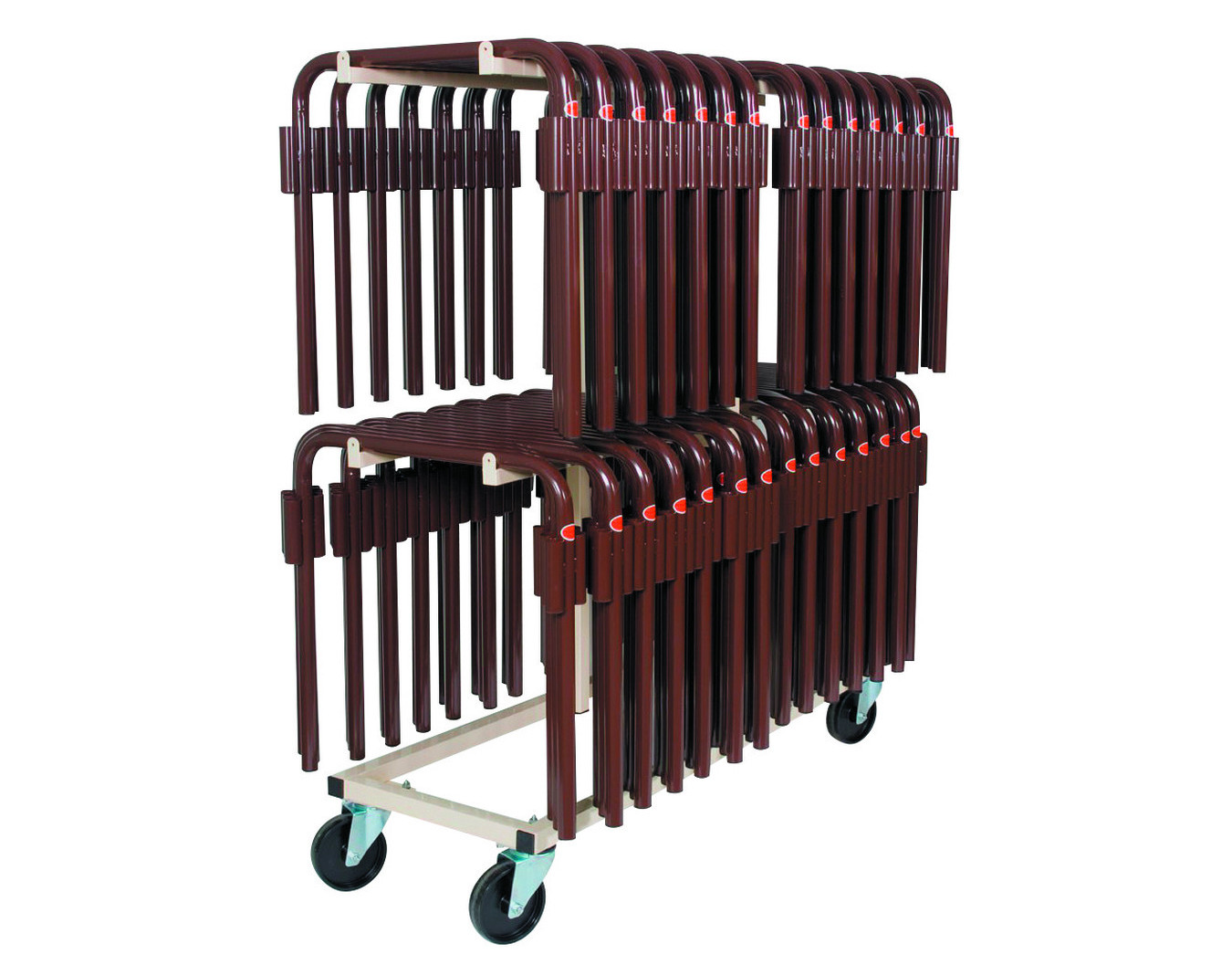 Chariot pieds de table : Dimensions : long. 160 x larg. 53 x haut. 173 cm. Capacité : 88 pieds.