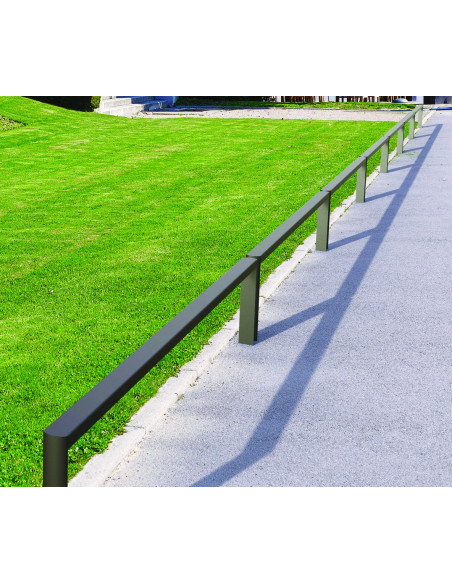 Acier 50 x 30 mm et pieds en profil demi-rond 50 x 10 mm.