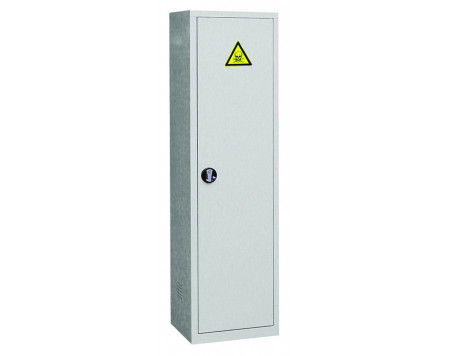 Armoire phytosanitaire à produits polluants toxiques. Structure réalisée en acier 8/10e, construction monobloc soudée, simple paroi et finition peinture époxy grise RAL 7035. Porte battante avec...