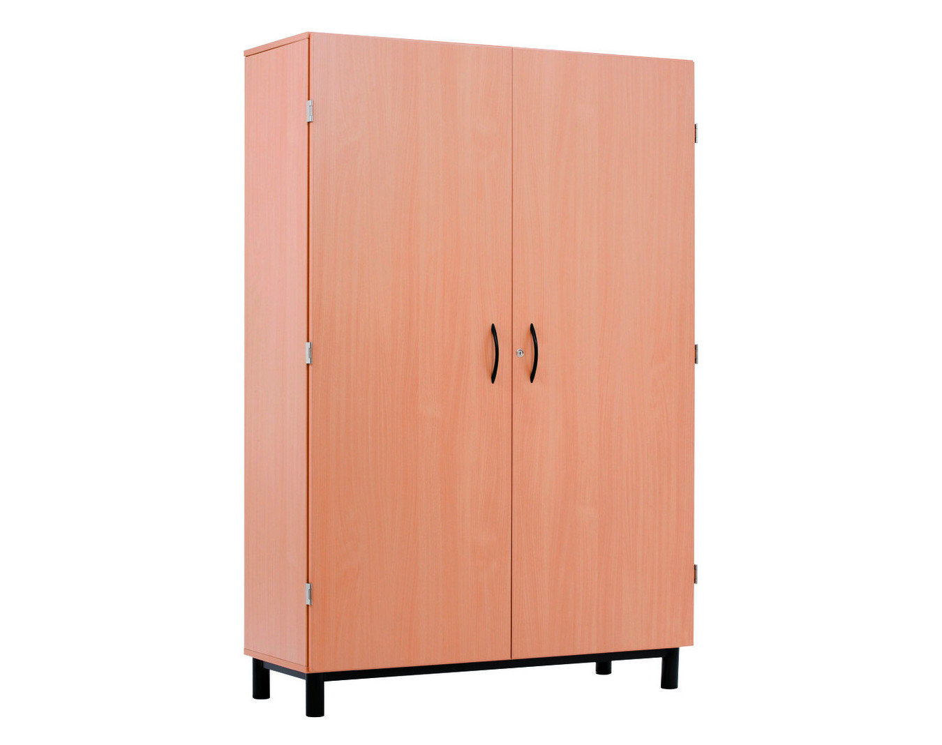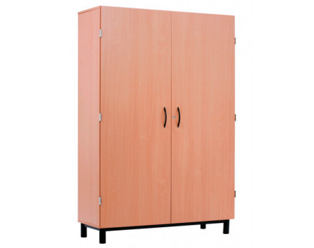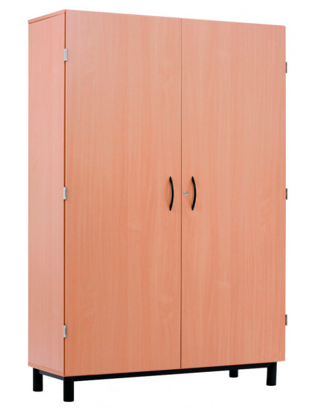 Armoire scolaire de rangement en bois. Structure en mélaminé épaisseur 19 mm avec chant ABS coloris seringa beige. Une tablette fixe et 4 mobiles. Pour le modèle hauteur 130 cm, 2 tablettes fixes...