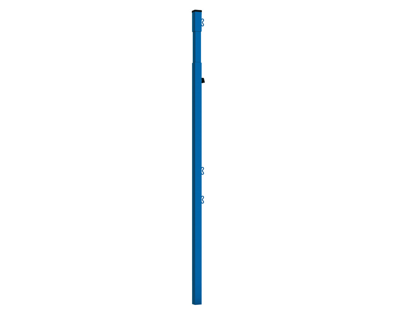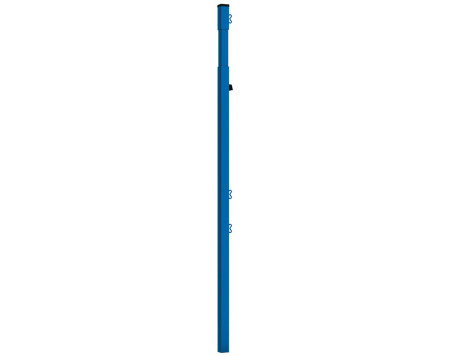 Poteaux réalisés en tube acier 4 x 4 cm, plastifié bleu RAL 5017.