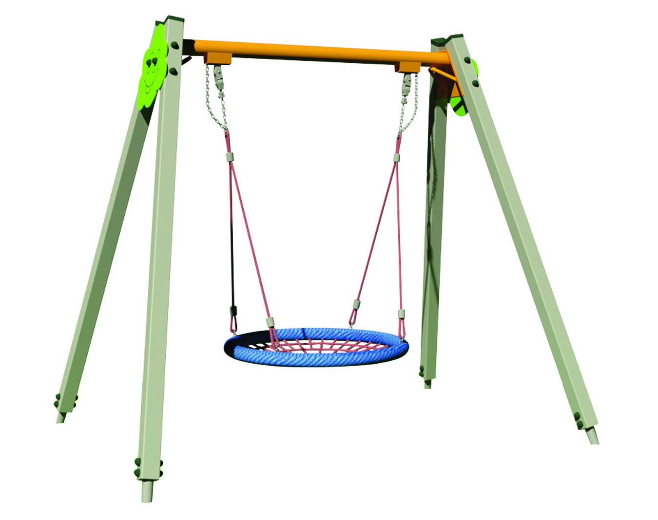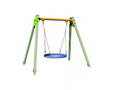 Portique nacelle pour enfants. Âge : 3 à 12 ans. Structure en aluminium avec traverse en acier galvanisé Ø 89 mm. Montants en aluminium section 90 x 90 mm. 1 siège nacelle. Fixation par scellement...