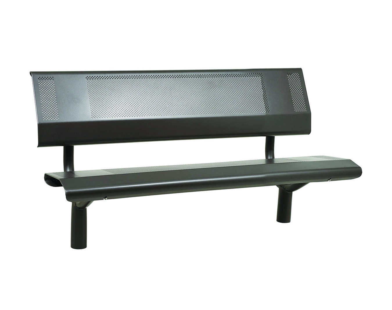 Assise et dossier en tôle acier perforée épaisseur 25/10e avec plis écrasés et angles arrondis aux extrémités pour une meilleure sécurité, support assise en tube rond Ø 50 mm.