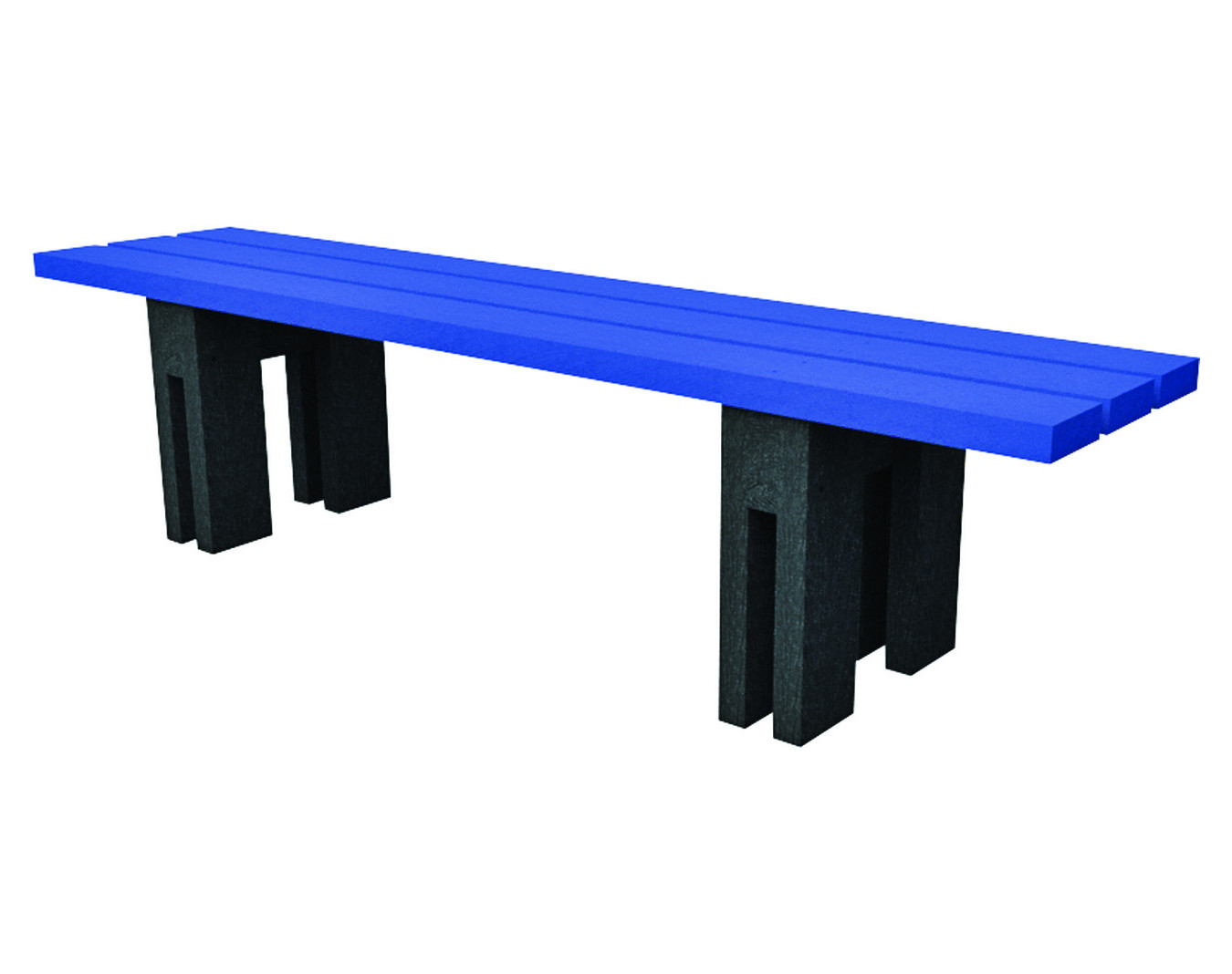 Banc de ville moderne 100 % plastique recyclé teinté dans la masse (voir nuancier). Sans entretien, résistant aux UV, à l’humidité et anti graffitis. Lames des assises renforcées section 4 x 12 cm....