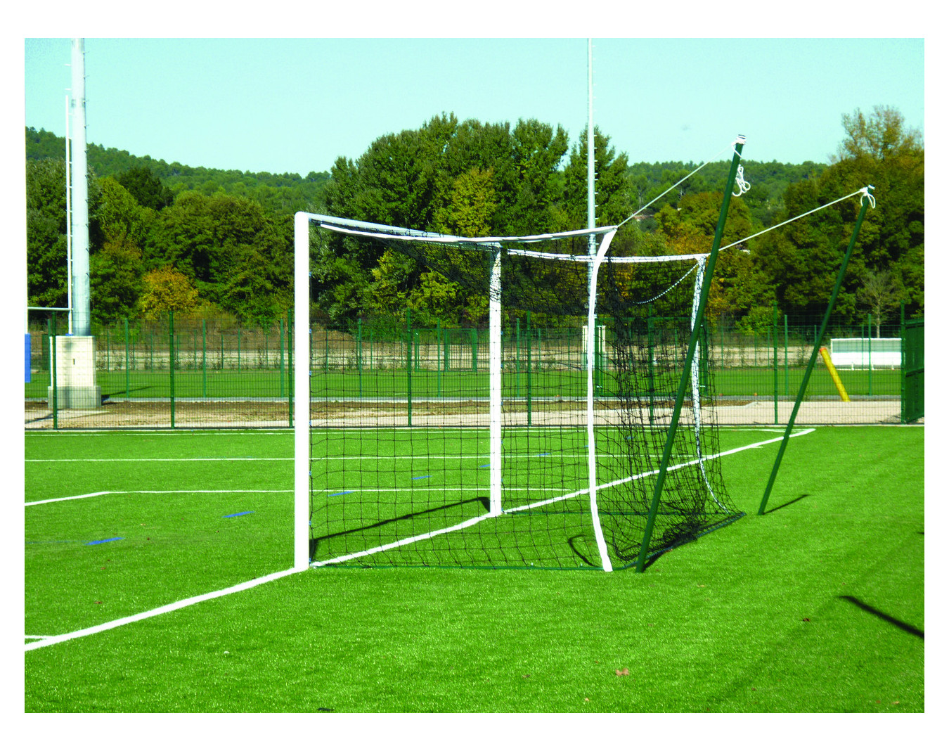 Options : filets, fourreaux à sceller, jeu de 4 mâts pour but et système de relevage filet.