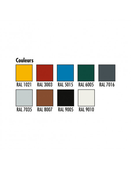 Réalisé en tube acier mécano-soudé galvanisé et finition plastifiée peinture époxy (voir nuancier).
