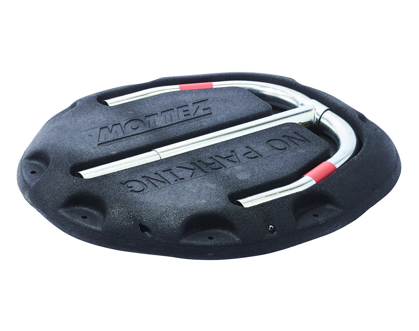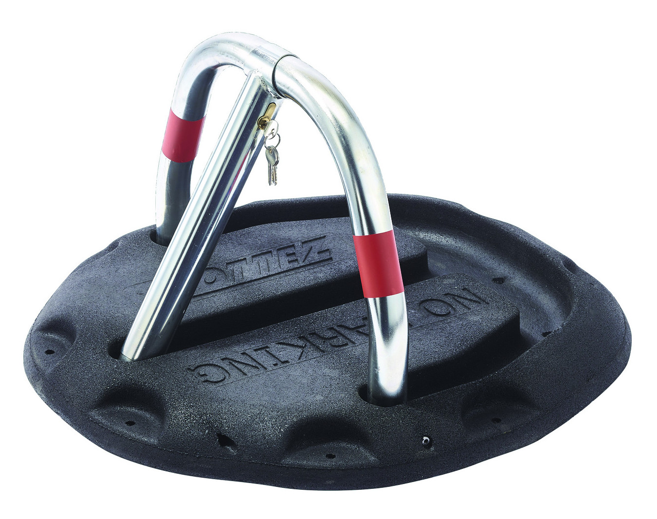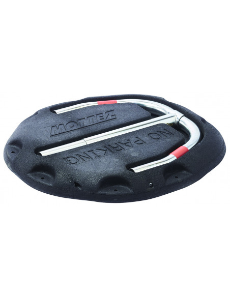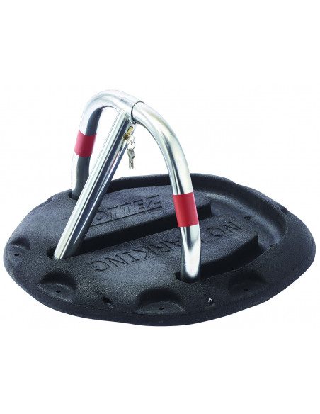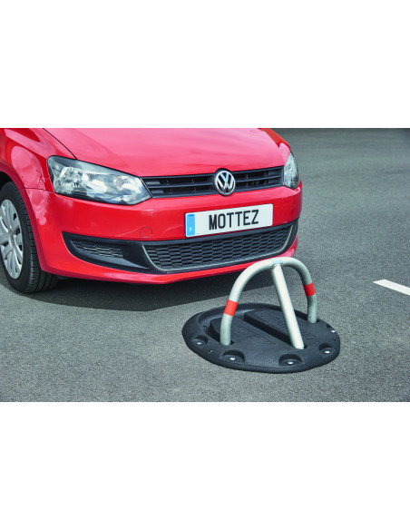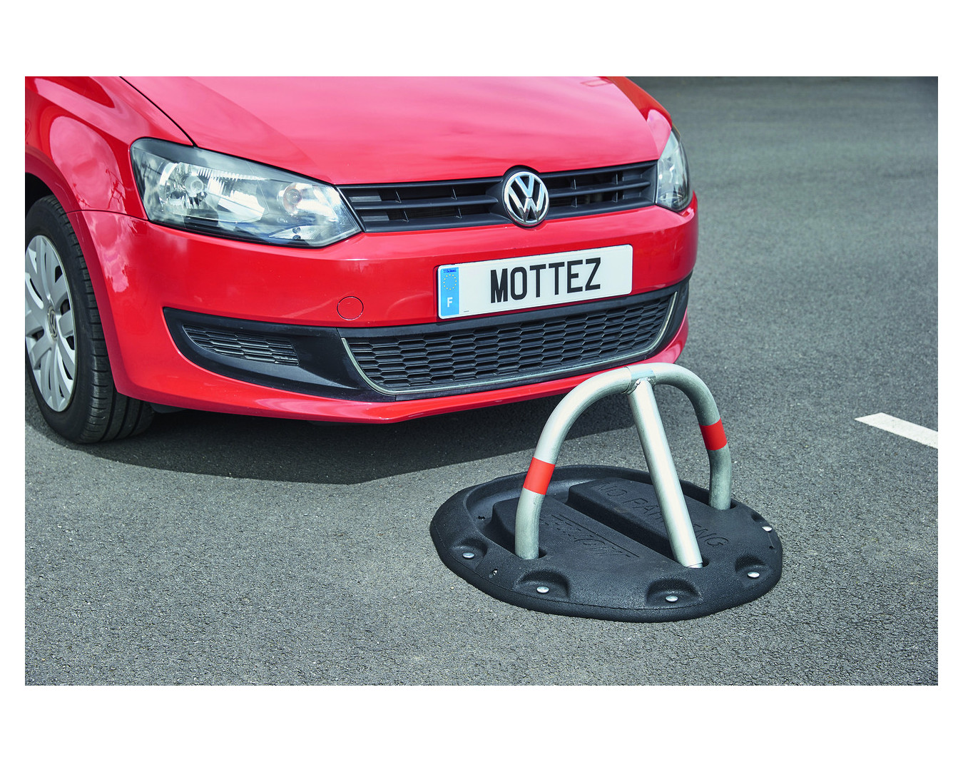 Arceau parking réalisé en acier avec 2 bandes rouges. Tube Ø 45 et 50 mm. Serrure canon européen avec 2 clés fournies. Socle en caoutchouc moulé recyclé épaisseur 60 mm. Résistance à l’écrasement...