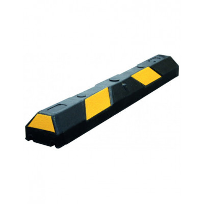 Bloc parking stop en acier zingué avec bandes fluo rouges.