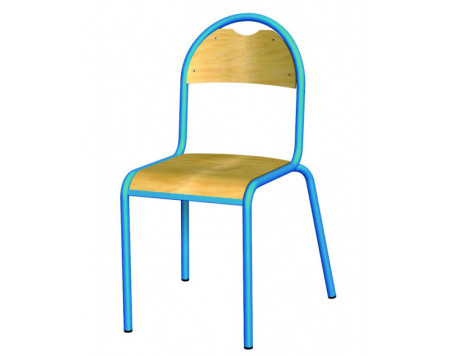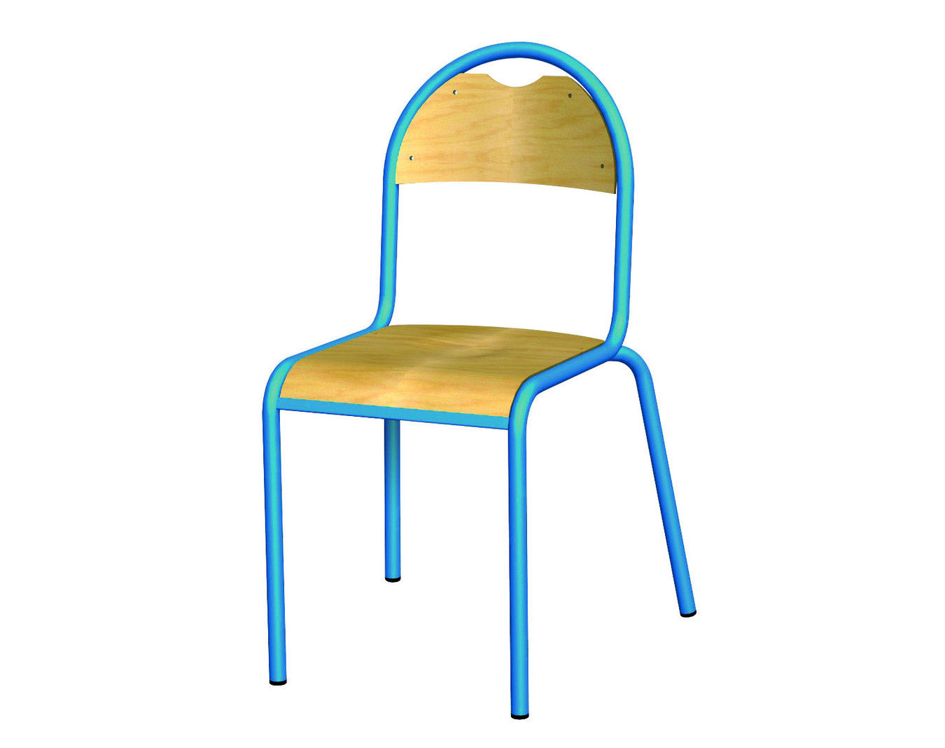 Chaise scolaire bois. Piètement en tube d’acier Ø 25 mm, épaisseur 1,5 mm, finition peinture époxy, équipé d’un embout de sol en polypropylène noir non tachant. Assise et dossier forme ergonomique...