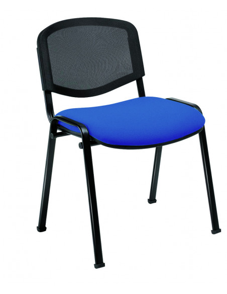 Chaise en tissu avec dossier résille, idéale pour équiper un espace d'accueil ou de réunion. Piètement en acier oblong 30 x 15 mm, finition peinture époxy noire, équipé de 4 tampons antibruit....