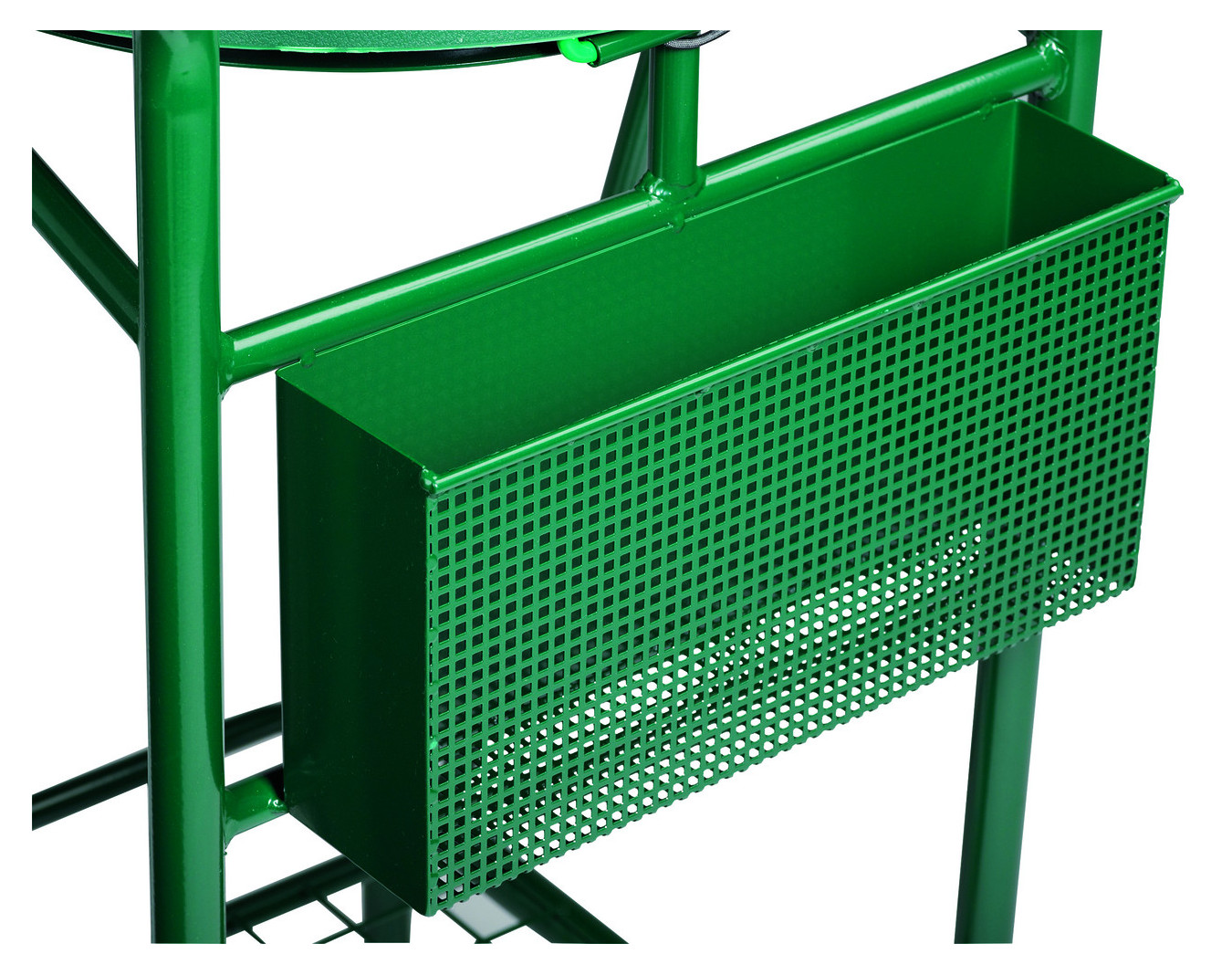 Structure réalisée en acier poudré époxy, coloris vert (RAL 6005). Tube Ø 25 mm.