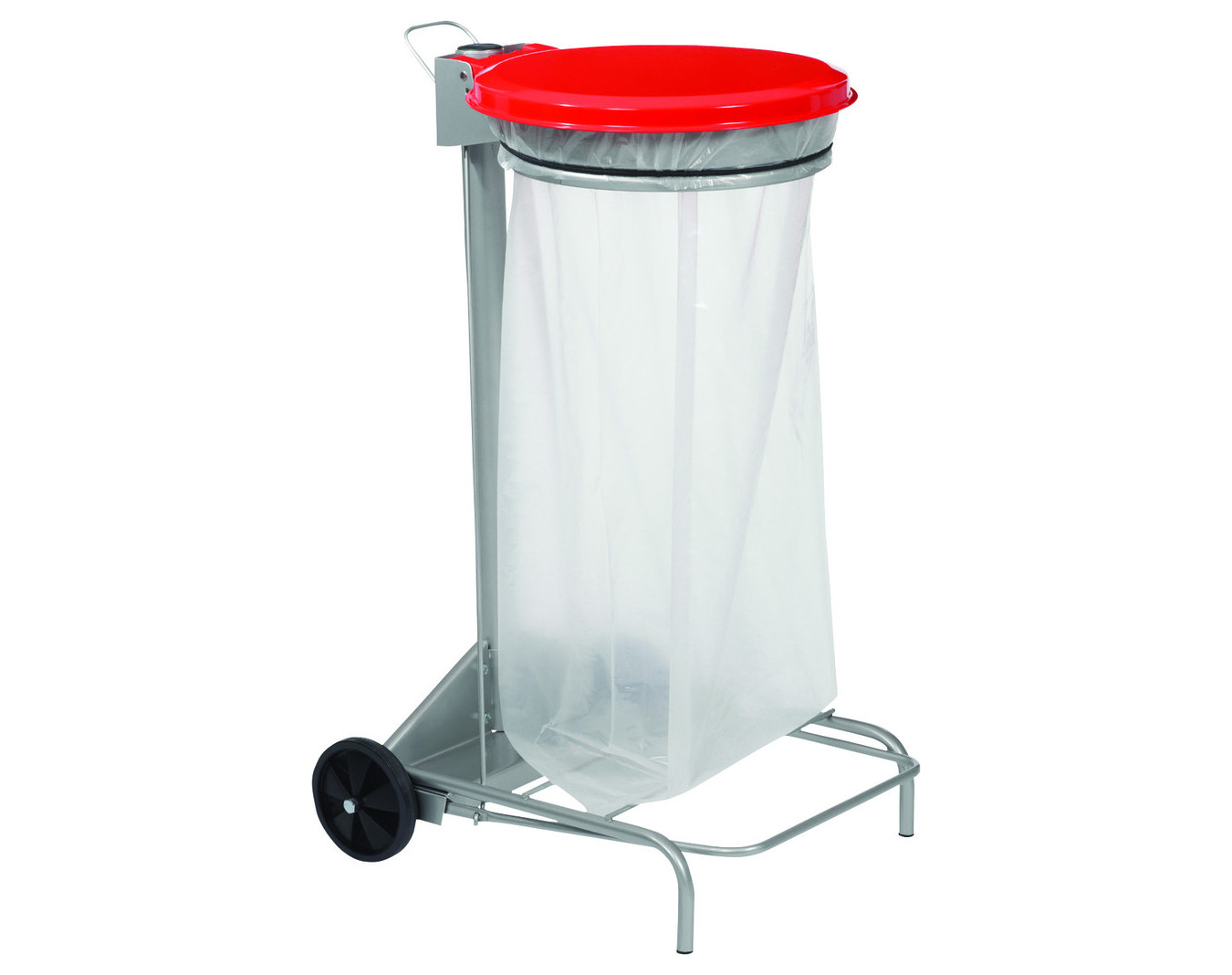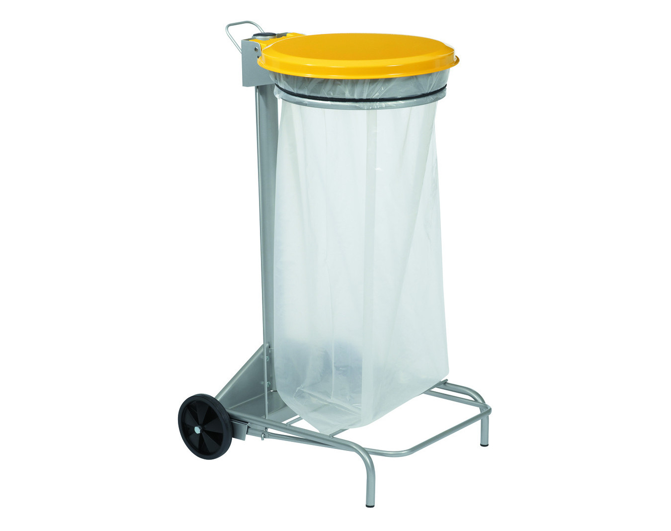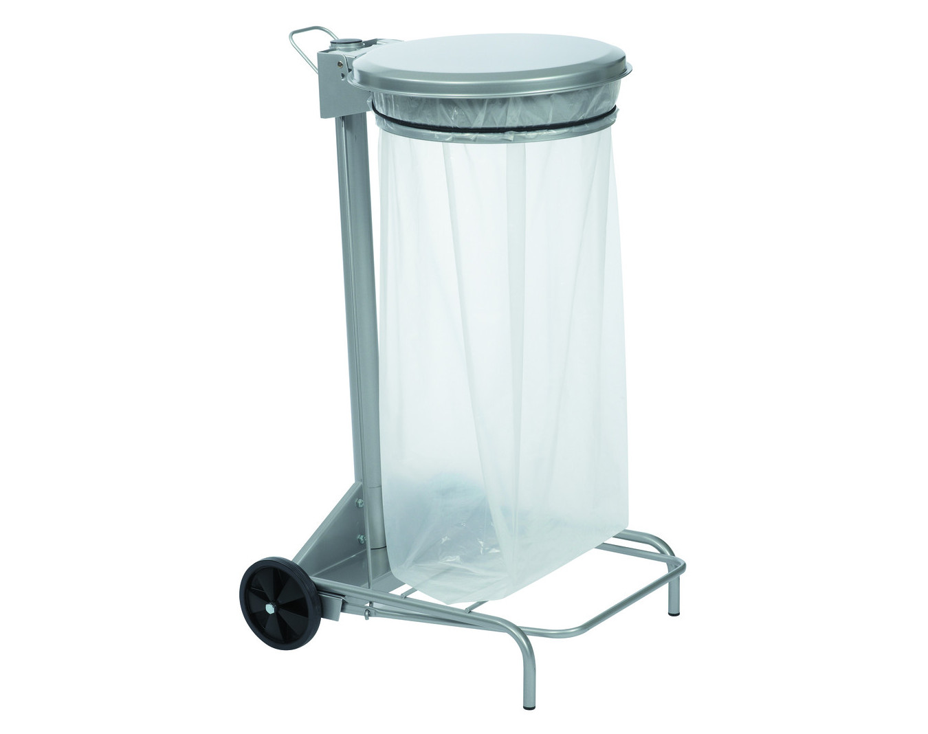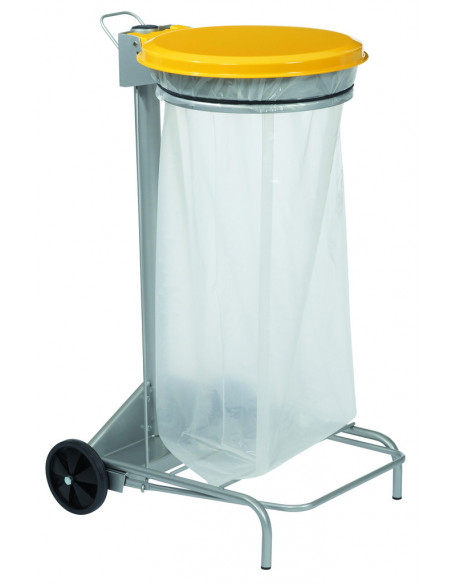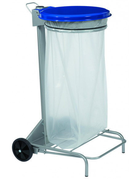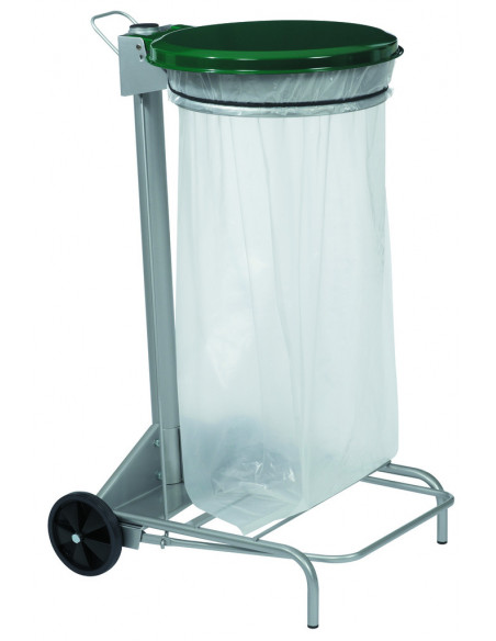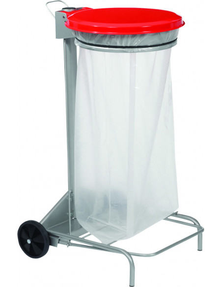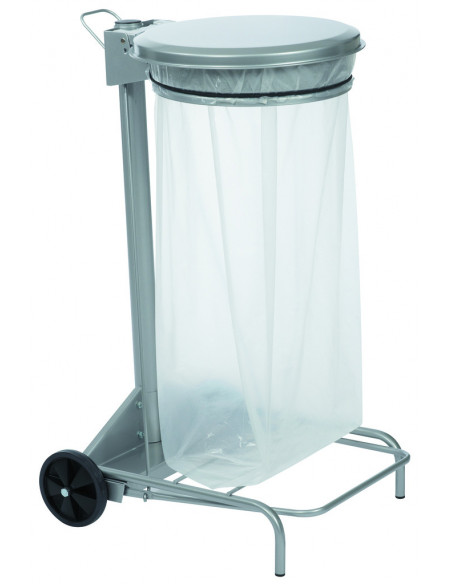 Chariot de voirie. Structure, coloris gris métal, réalisée en acier poudré anti-UV ou inox. Couvercle coloris au choix (voir nuancier). Maintien du sac par ceinture. Large pédale pour ouverture du...