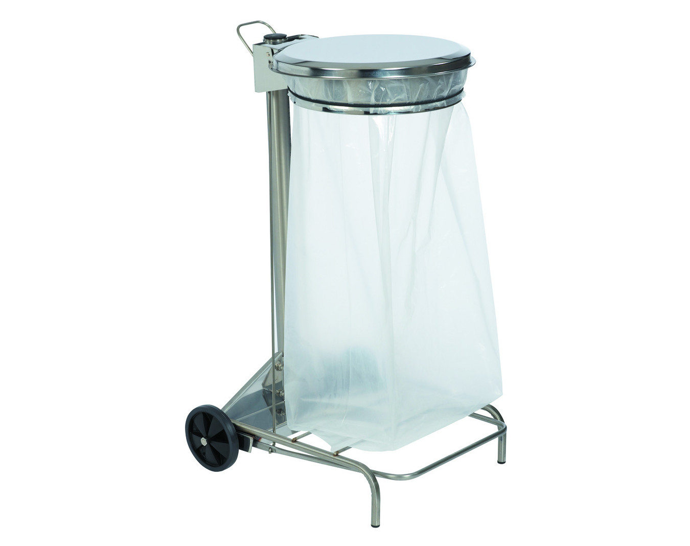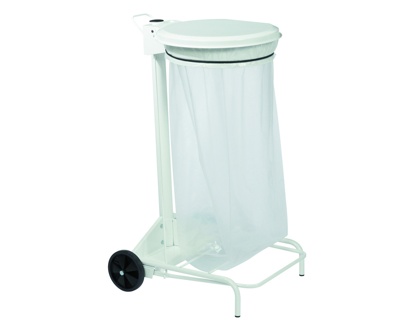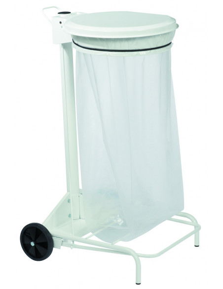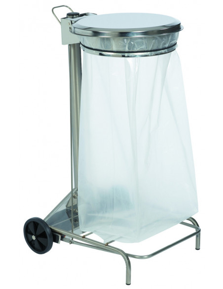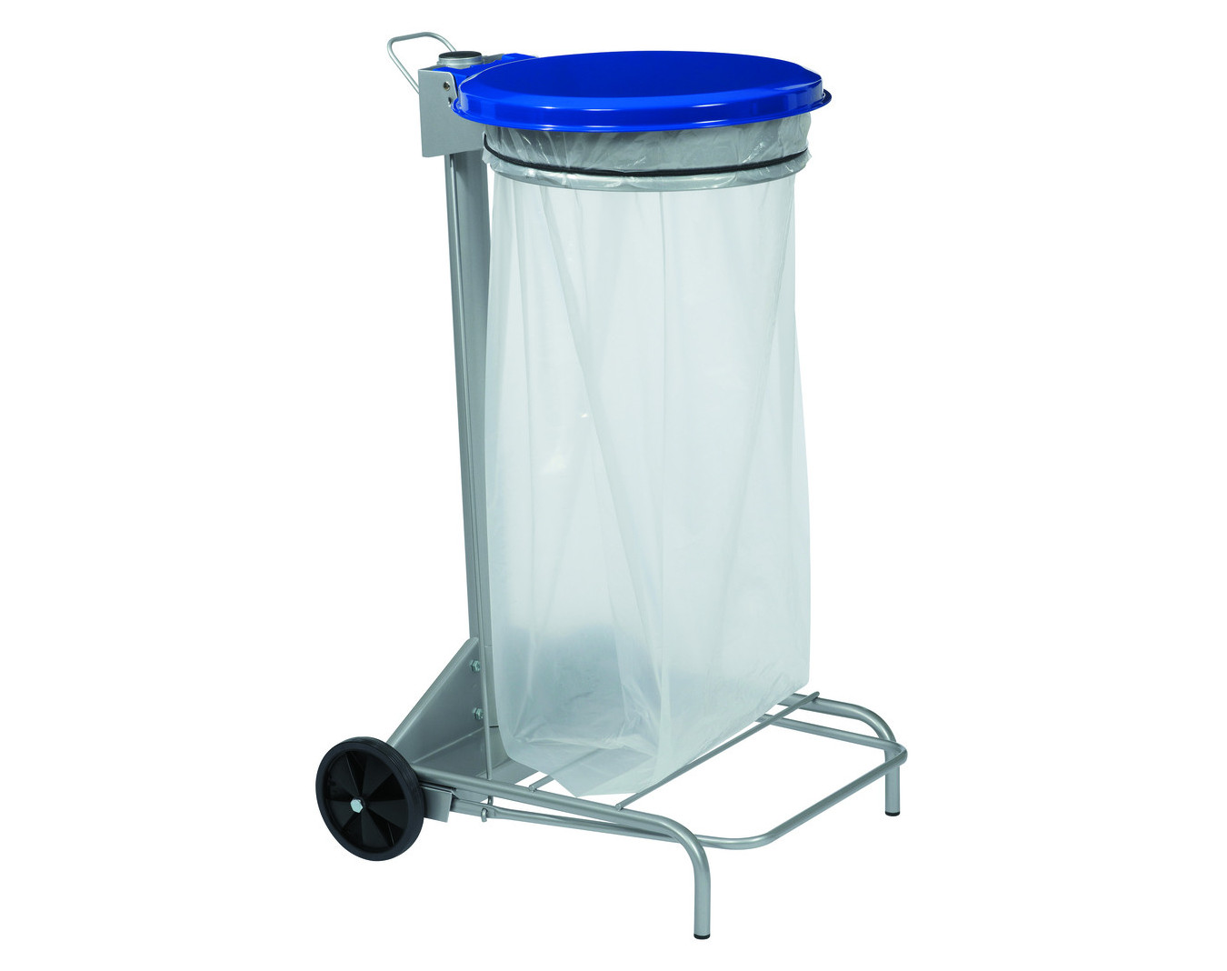 Chariot de voirie. Structure, coloris gris métal, réalisée en acier poudré anti-UV ou inox. Couvercle coloris au choix (voir nuancier). Maintien du sac par ceinture. Large pédale pour ouverture du...