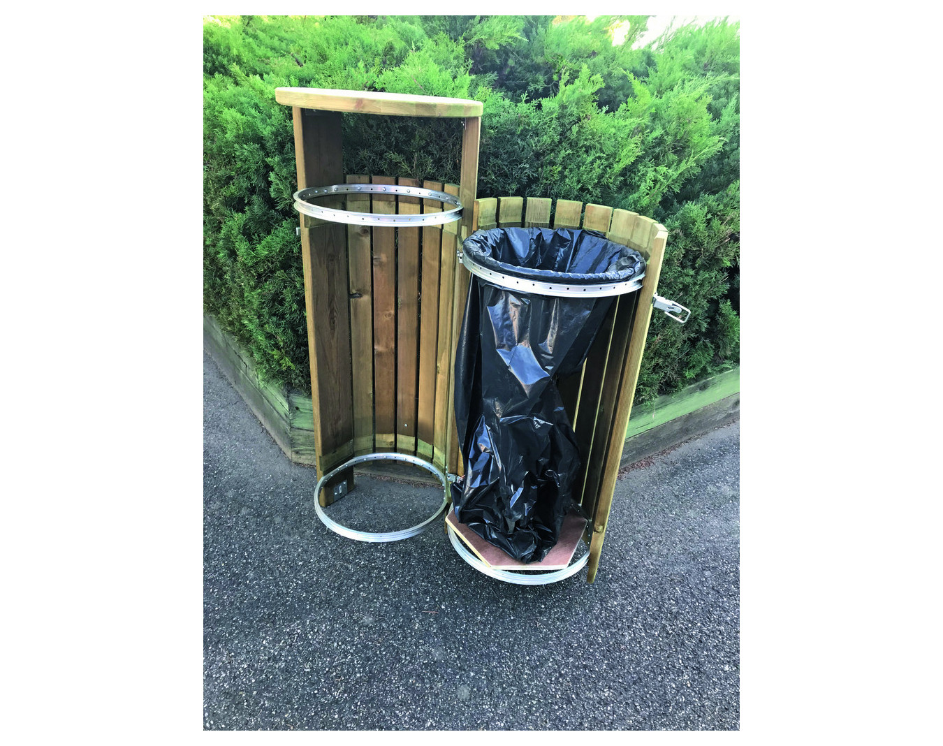 Corbeille extérieure avec support-sac poubelle. Pin traité autoclave classe IV. Lames section 65 x 28 mm. Structure en métal. Façade ouvrante et verrouillage avec clé à empreinte carrée (fournie)....