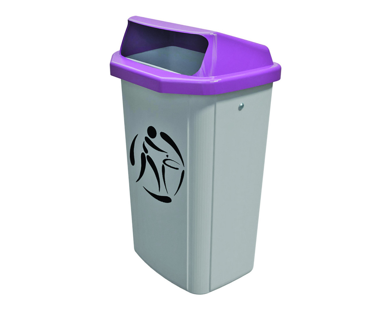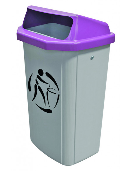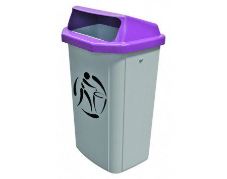 Corbeille de rue réalisée en PEHD, équipée d’un support aluminium. Dimensions : larg. 43 x prof. 33 x haut. 76 cm. Volume : 50 litres. À fixer au mur ou sur poteau.