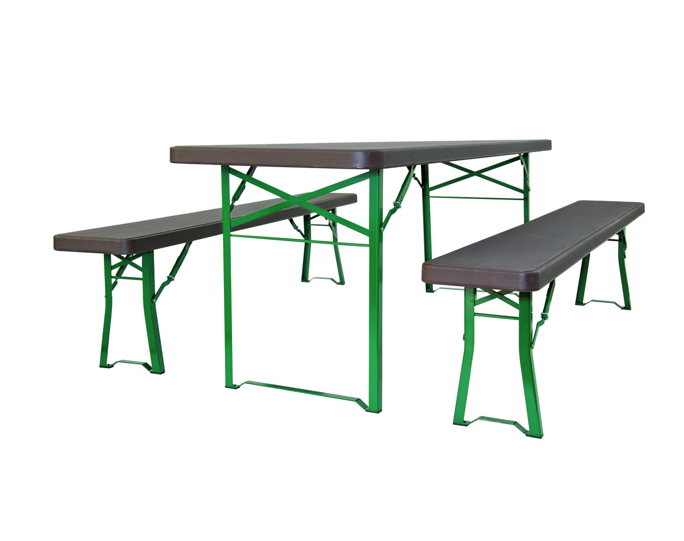 Plateau de table et de banc en polyéthylène, coloris marron.