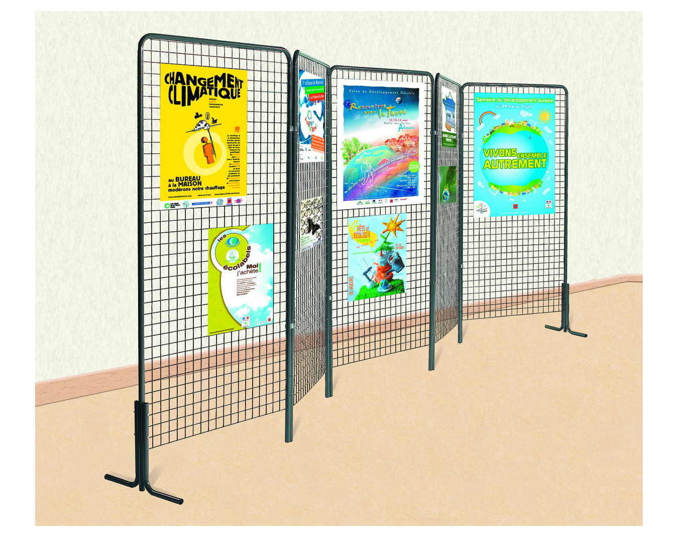 Piètement avec 2 coudes pour grille d'exposition : stabilité parfaite.