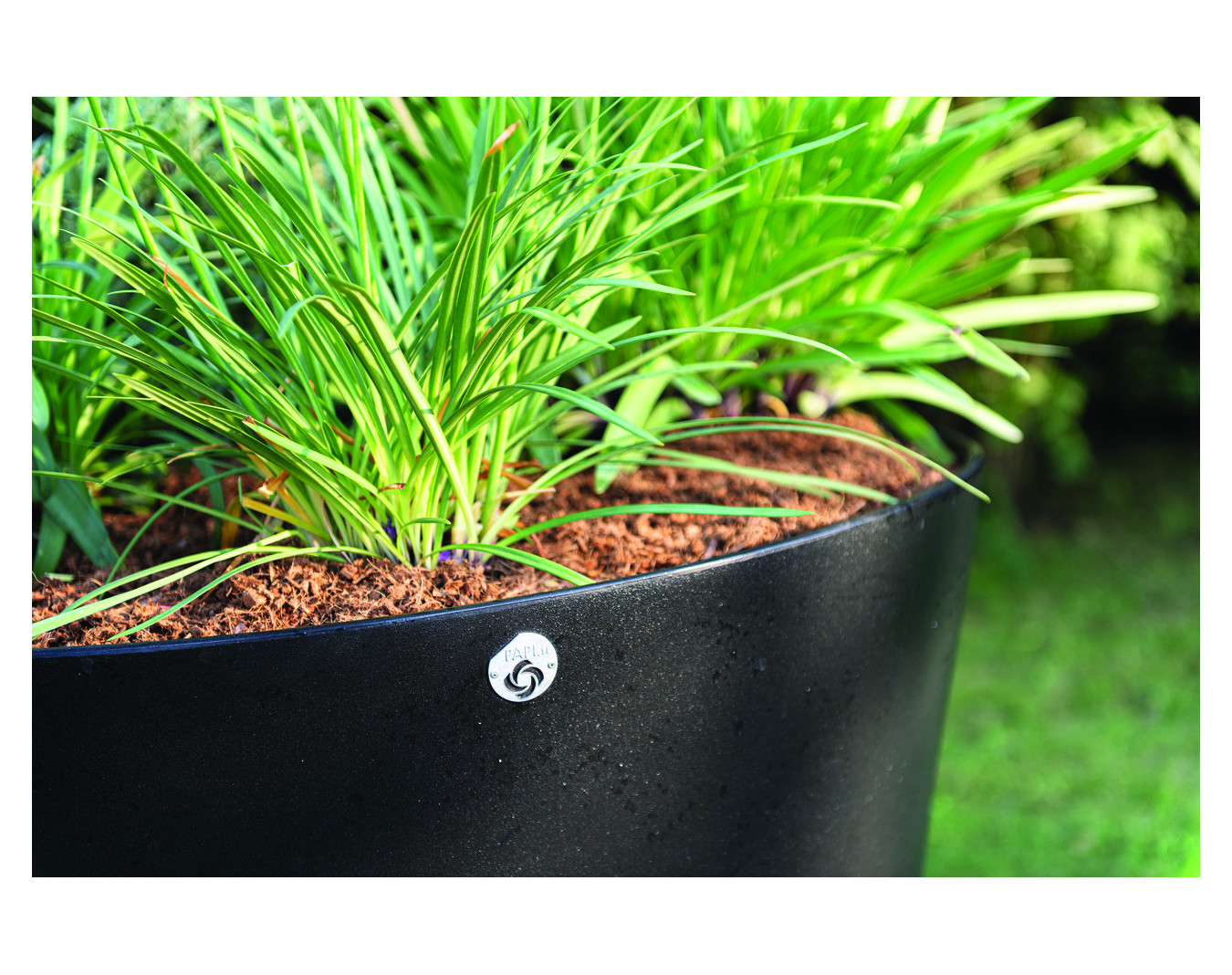 Pot de fleurs XXL en polyéthylène rotomoulé teinté 100 % recyclable dans la masse, résistant aux chocs, insensible au gel et résistant aux UV.