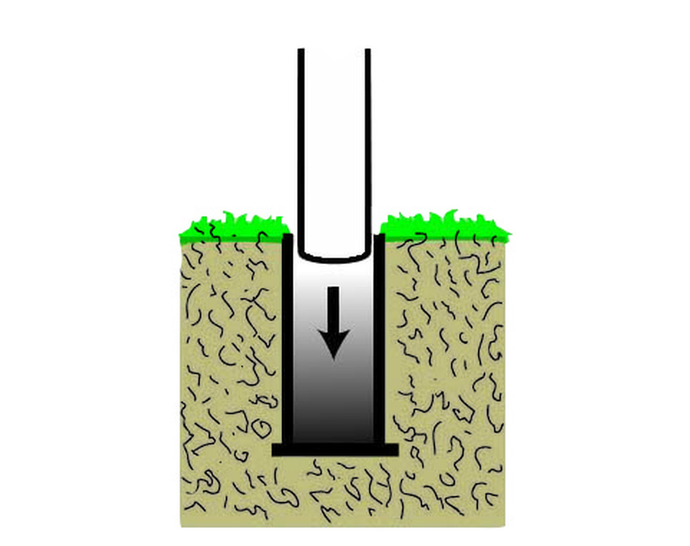 Fourreau pour mât de Ø 60 mm à la base. Le fourreau est de hauteur 75 cm. Il est complètement enterré dans le massif béton. Adapté pour les installations temporaires, mais avec une perte de hauteur de 75 cm. Livré avec bouchon obturateur permettant de cacher le trou lorsque le mât est retiré.