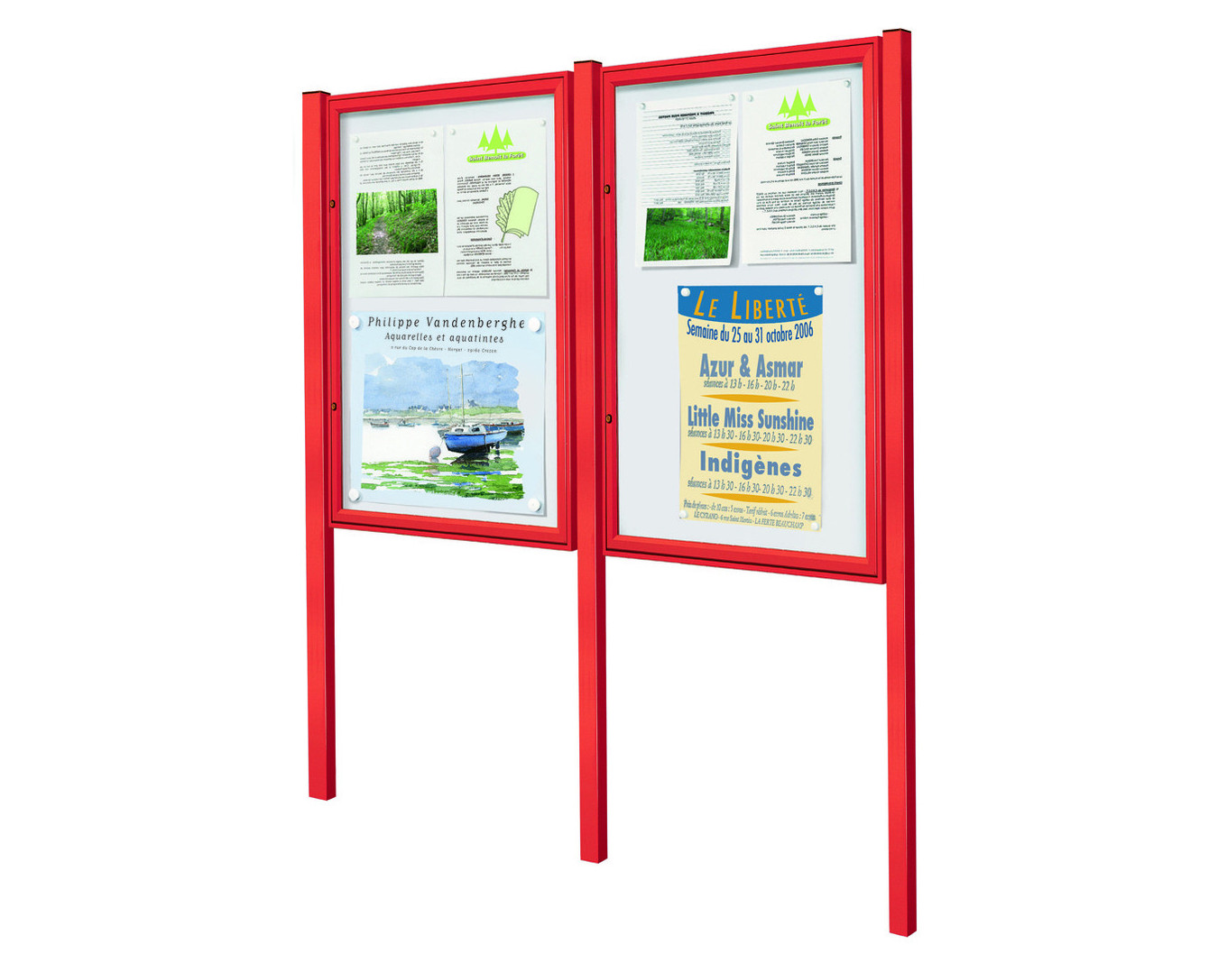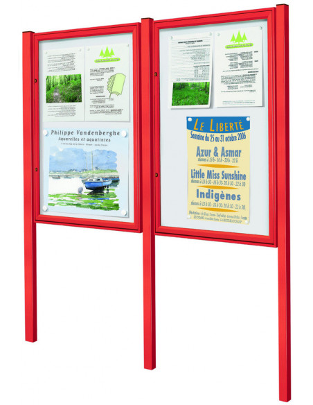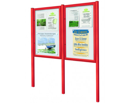 Vitrine sur poteaux. Ensemble composé d'une vitrine et d'un kit poteaux (2 poteaux + 4 pièces de fixation). Encadrement en aluminium peint (voir nuancier) avec angles vifs. Vitre en plexichocs, ép....
