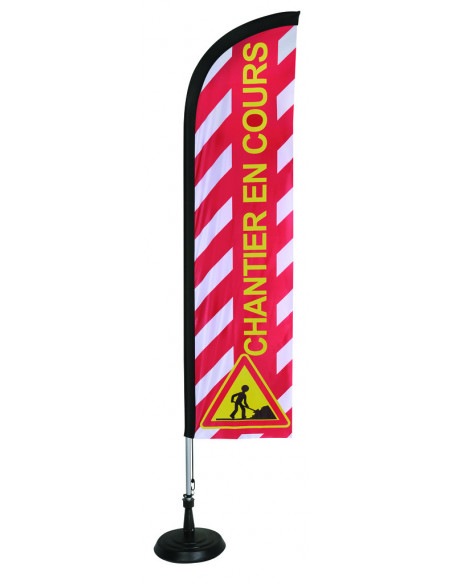 Voile plume en maille polyester, fourreau en sangle élastique, œillets + renfort + sandow. Montée sur mât en tubes d’aluminium emboitables, surmontés d’une tige en fibre de verre. Finition basse :...