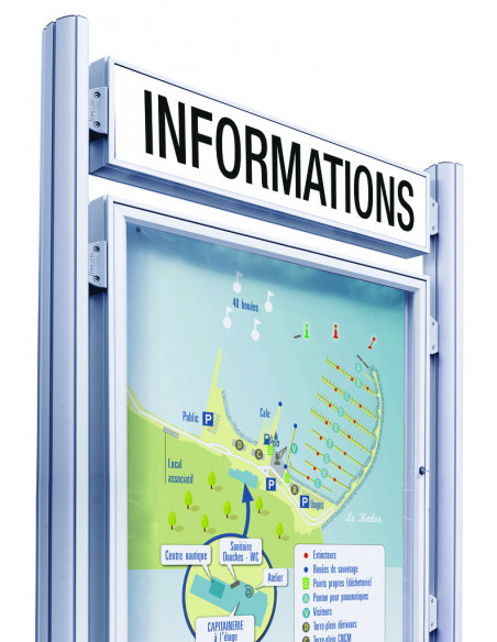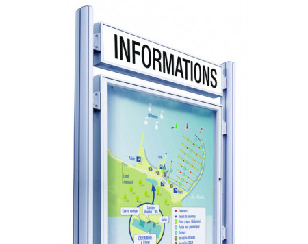 Vitrine 1000 double battant. Ensemble composé d'une vitrine et d'un kit poteaux Quatro (2 poteaux + 4 pièces de liaison). Encadrement en aluminium anodisé naturel avec angles vifs. Vitre en...