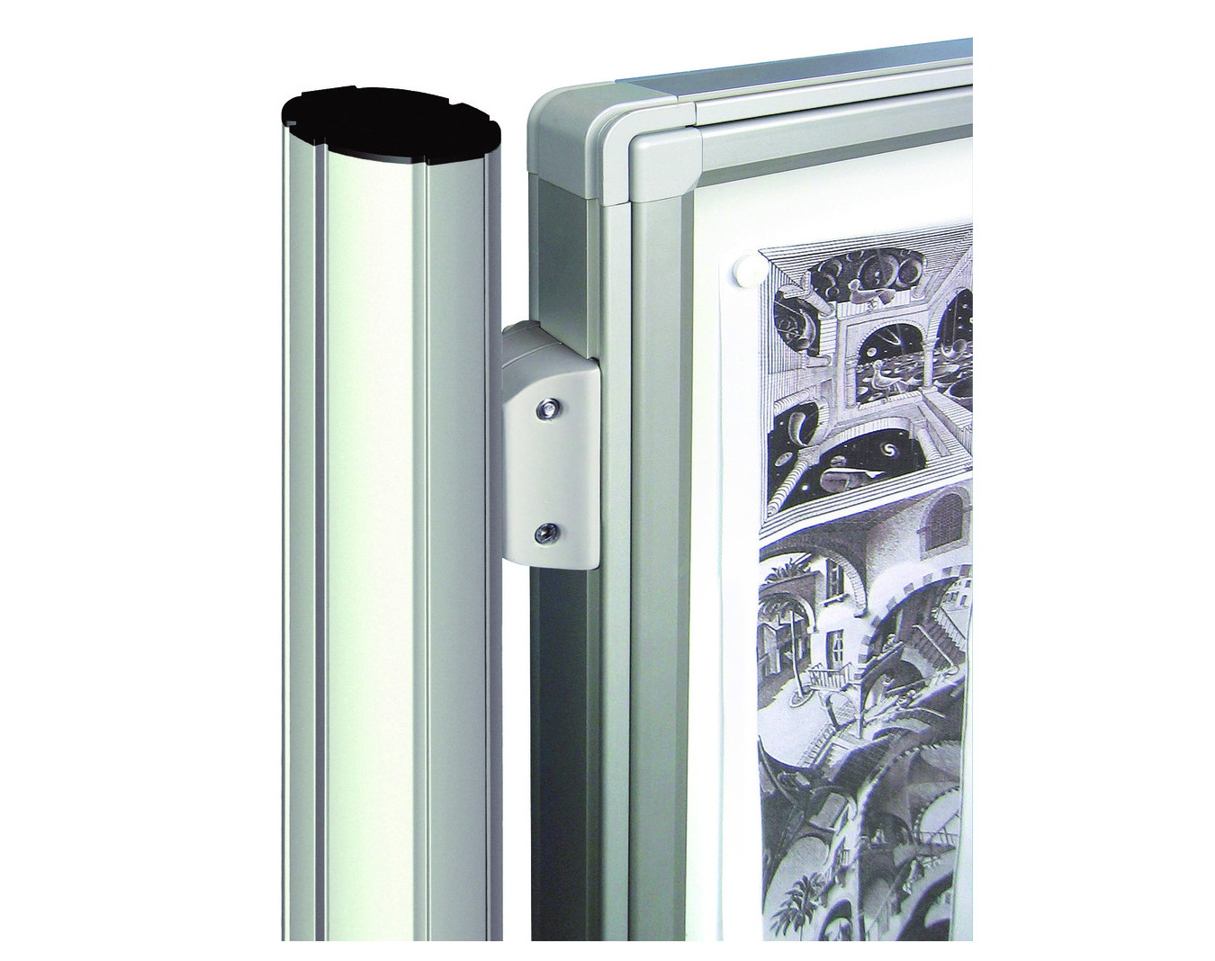 Ensemble composé d'une vitrine et d'un kit poteaux Quatro (2 poteaux + 4 pièces de liaison).