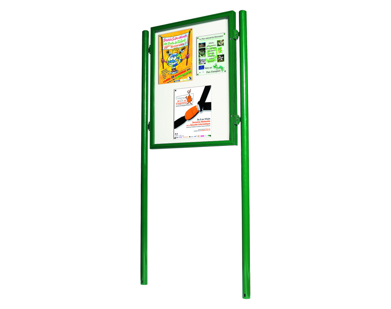 Panneau d'information. Encadrement de la vitrine en aluminium anodisé finition peinture époxy (voir nuancier). Vitre en plexiglas, ép. 4 mm. Fond tôle blanc pour affichage magnétique. Épaisseur...