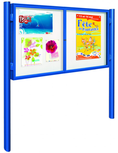 Vitrine d'affichage 1000. Ensemble composé d'une vitrine et d'un kit poteaux Quatro (2 poteaux + 4 pièces de liaison). Encadrement en aluminium peint (voir nuancier) avec angles vifs. Vitre en...