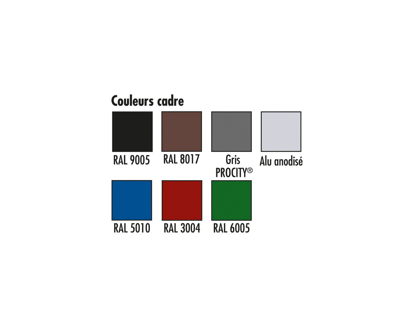 Encadrement en aluminium peint (voir nuancier) avec angles vifs.