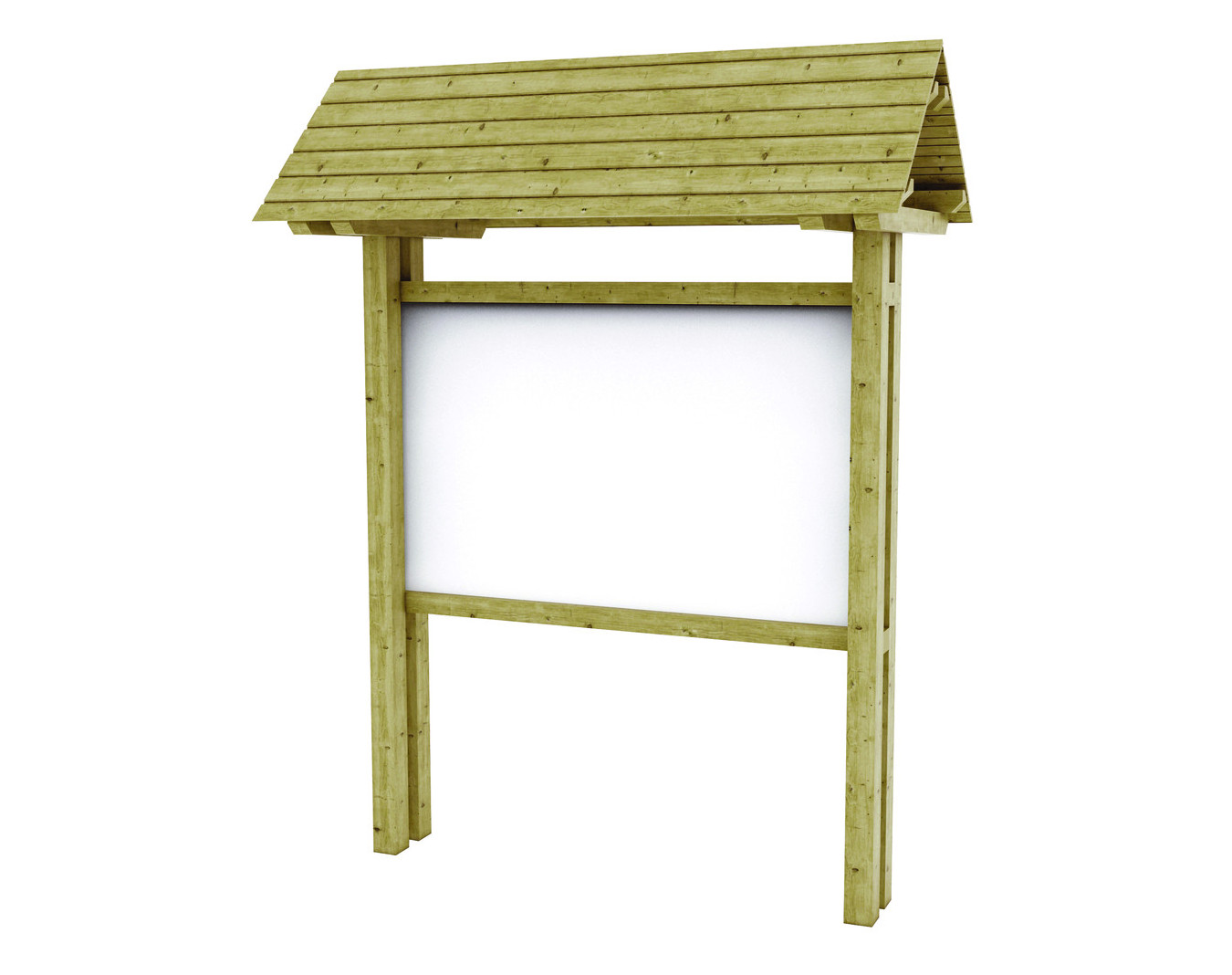 Panneau d'information avec toit. Structure réalisée en Pin du Nord traité autoclave classe IV sans Cuivre, Chrome ni Arsenic, certifié FSC. Poteaux carrés 90 x 90 mm et traverse rectangulaire 70 x...