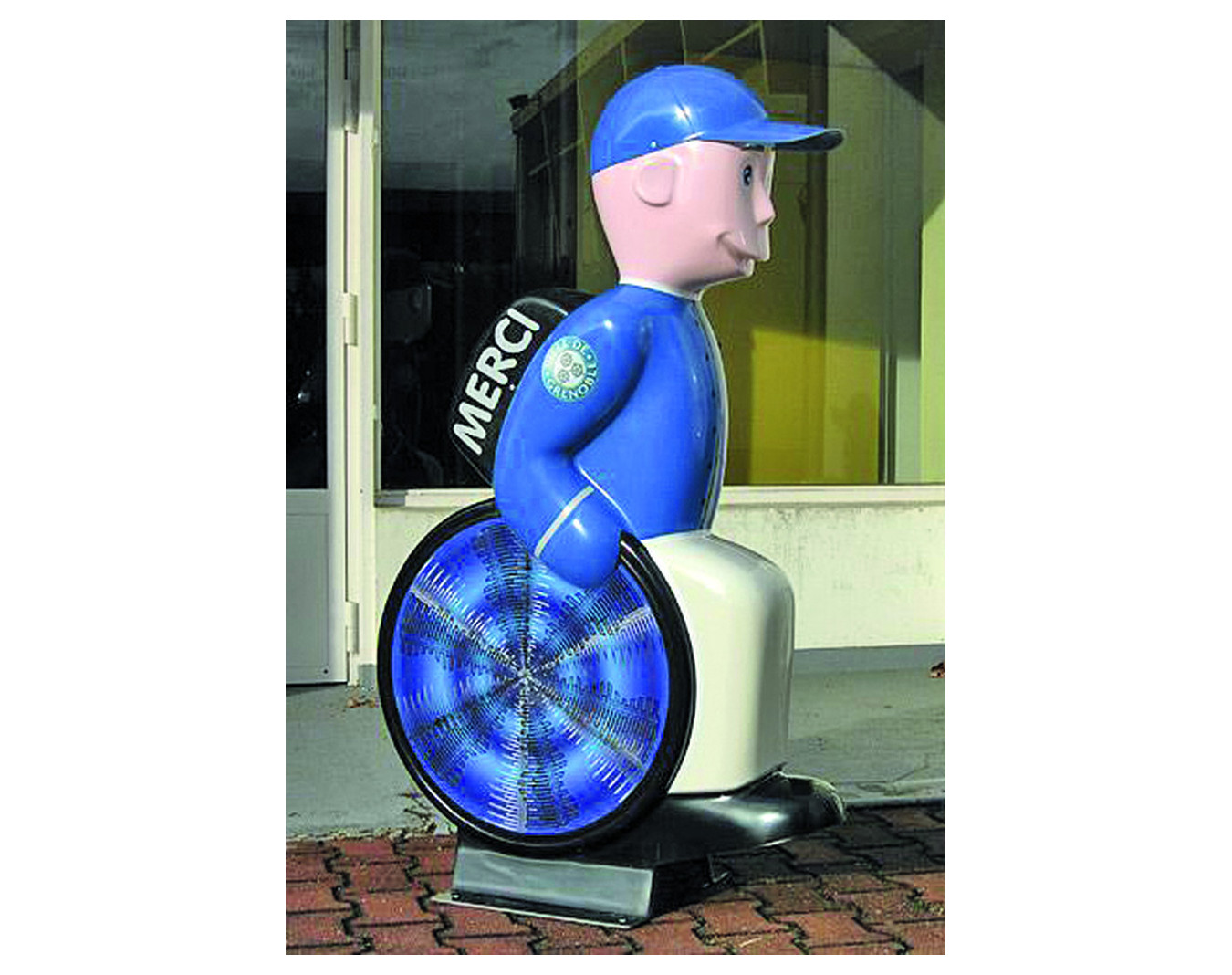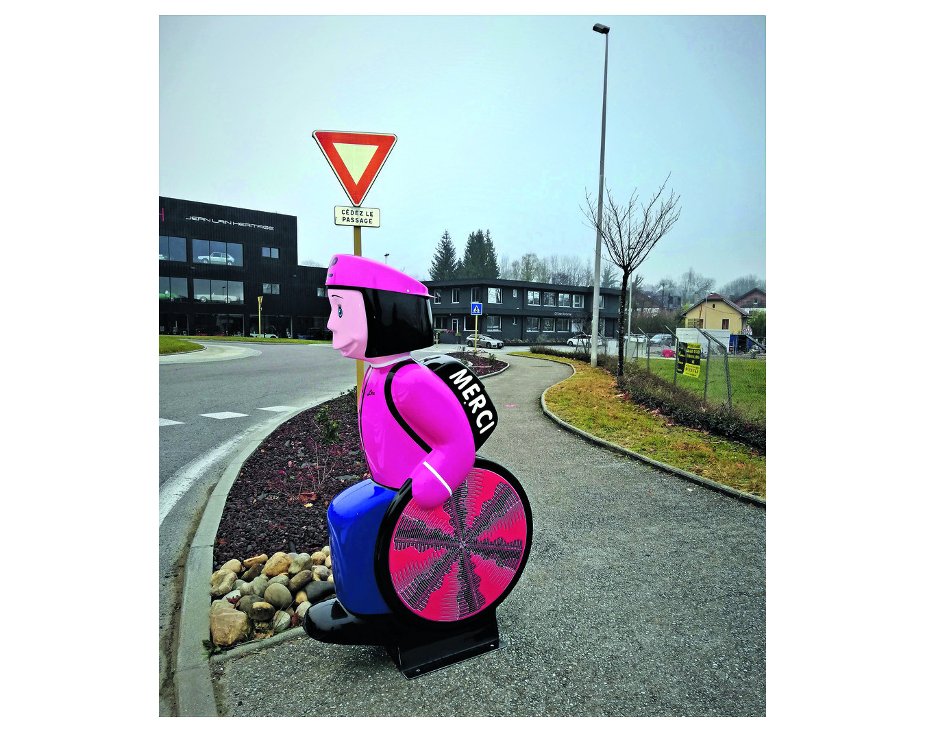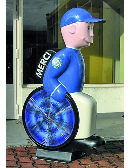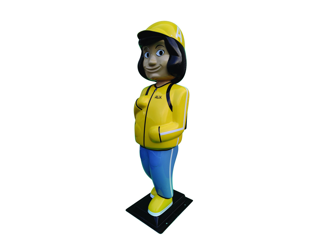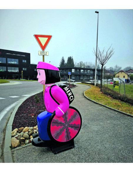 Personnage 3D permettant de sécuriser les zones protégées. Fort impact visuel. Fibre de verre et résine polyester très résistante. Gel coat teinté dans la masse. Texte "MERCI". Bandes...