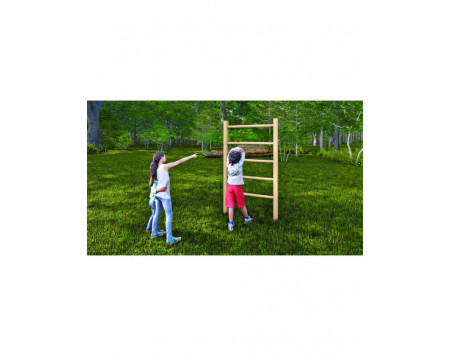 Âge du parcours de santé : de 3 à 12 ans. Poteaux de l'espalier en pin traité autoclave classe IV. Échelons en bois tourné exotique Ø 35 mm. Zone d'impact : 339 x 430 cm. Surface amortissante : 1,5...