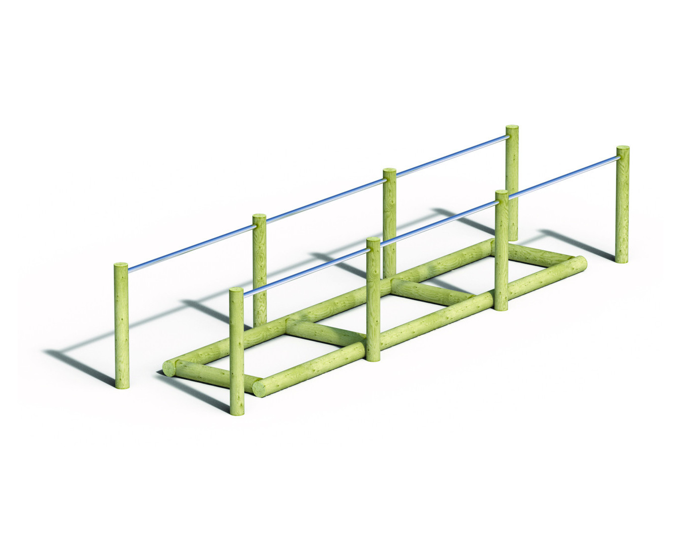 Parcours sportif adapté aux seniors à composer avec les différents agrès. Conforme à la norme NF EN 599 et certifié CTBP+. Pin du Nord traité autoclave classe IV. Module passage à granulométrie...