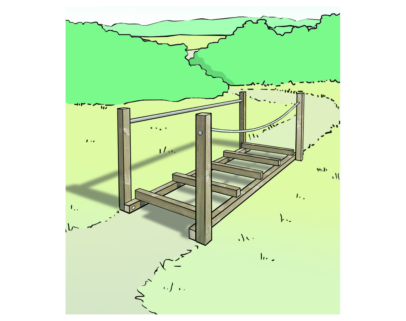 Module de parcours sportif, le pas cadence en couloir adapté aux personnes à mobilité réduite.