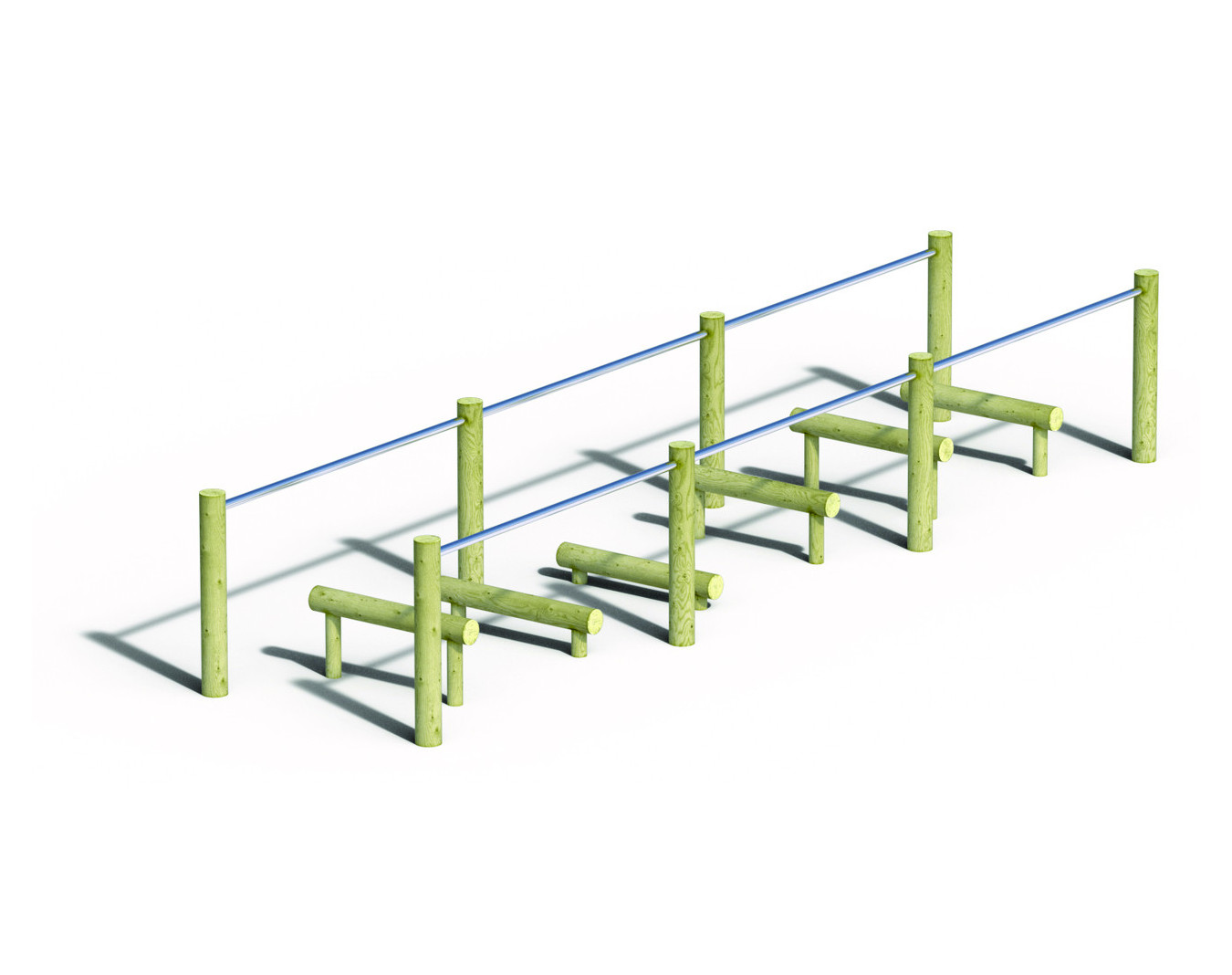 Conforme à la norme NF EN 599 et certifiés CTBP+. Pin du Nord traité autoclave classe IV. Composition du passage d’obstacles 2 rampes : 6 haies (haut. comprises entre 15 et 35 cm) et 2 mains...