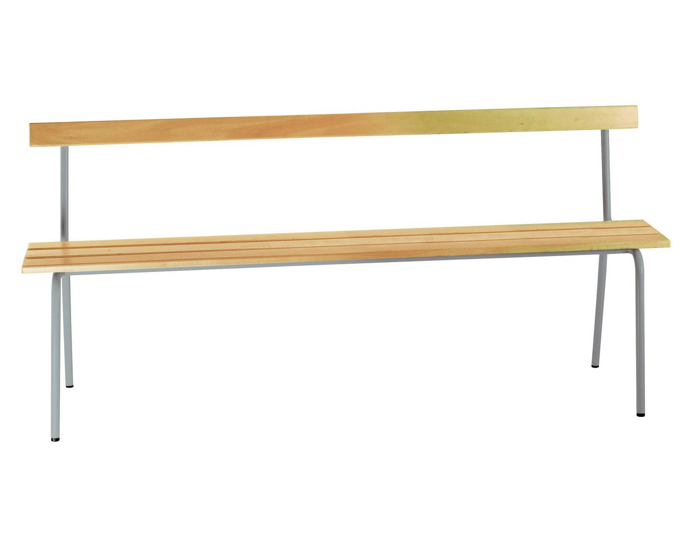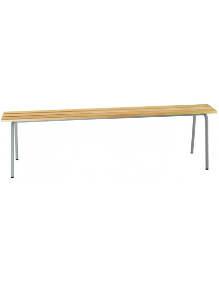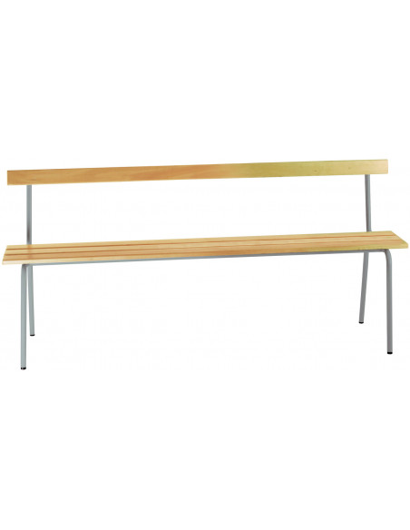 Banc pour école en bois. Piètements cintrés en « U » en tube acier Ø 22 mm reliés par 2 (banquette) ou 3 (banc) longerons en tube rectangle 30 x 20 mm, finition peinture époxy (voir nuancier)....