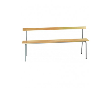Assise composée de 3 lames (186 mm) et dossier d'une lame (90 mm) en hêtre massif vernis naturel (épaisseur 19 mm), fixées sur la structure.