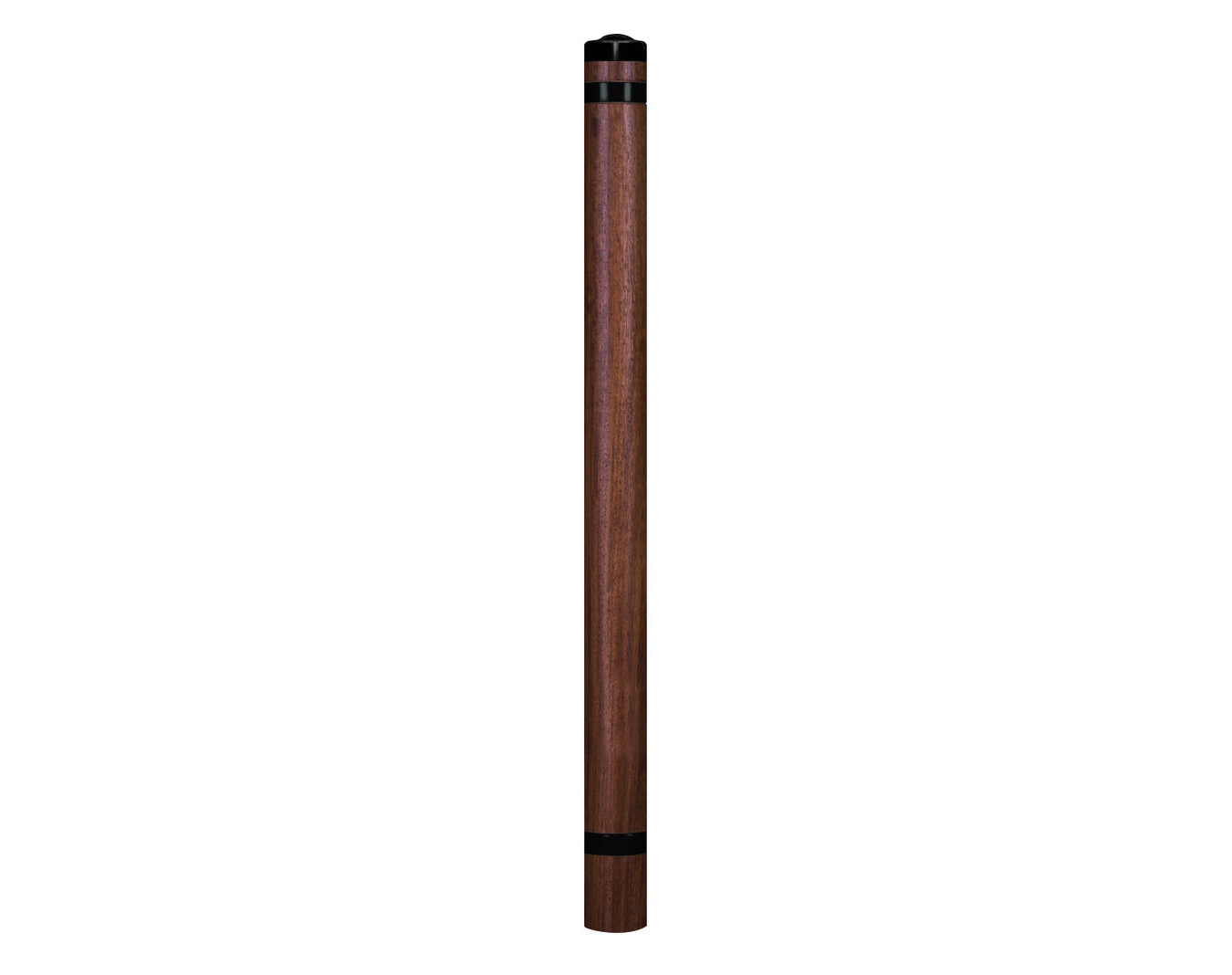 Bois exotique (voir nuancier). Potelet avec pommeau en acier galvanisé. Dimensions : Ø 8 x haut. 120 cm. Hauteur hors-sol : 100 cm. À sceller.