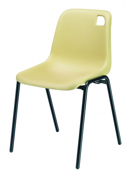 Chaise coque Vanoise non assemblable. Piètement en acier rond Ø 22 mm, finition peinture époxy, équipé de 4 tampons antibruit non tachant. Coque en polypropylène aspect grainé, classée au feu M2,...